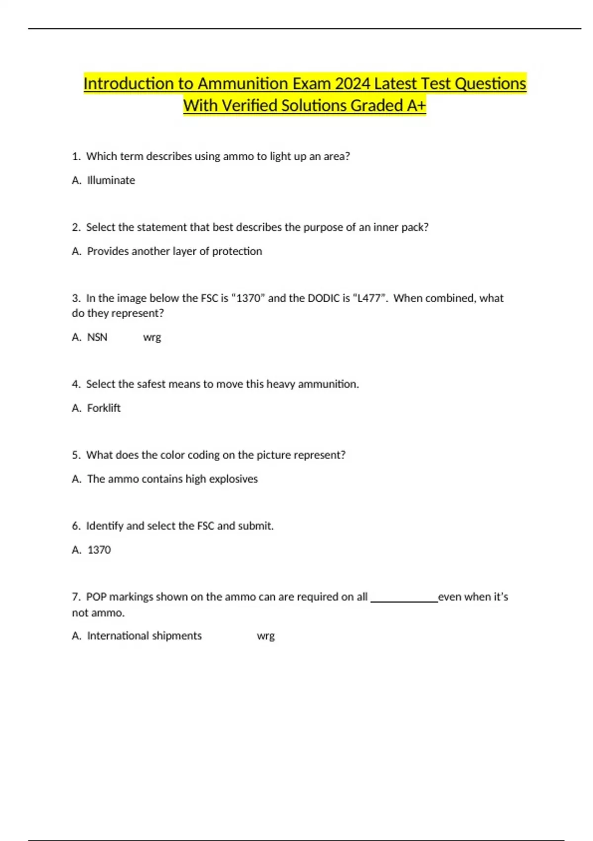 Introduction to Ammunition Exam 2024 Latest Test Questions With Verified Solutions Graded A+