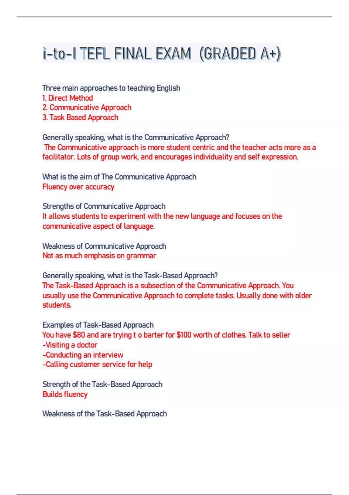 i-to-I TEFL FINAL EXAM (GRADED A+)