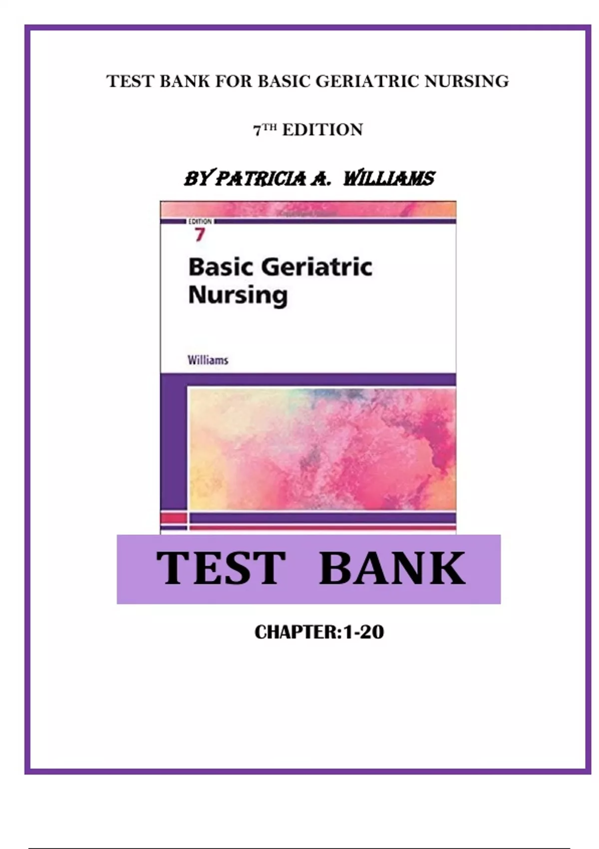 TEST BANK FOR BASIC GERIATRIC NURSING 7TH EDITION BY PATRICIA A. WILLIAMS