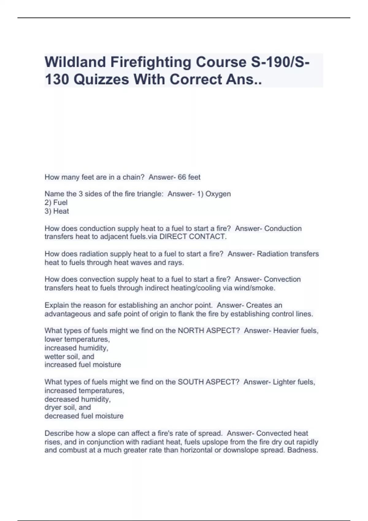Wildland Firefighting Course S-190/S-130 Quizzes With Correct Ans..