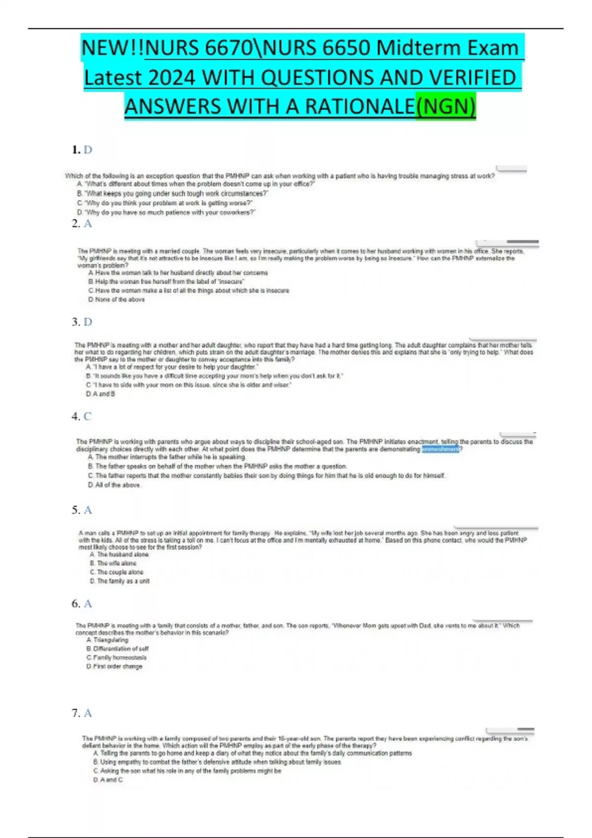 NEW!!NURS 6670NURS 6650 Midterm Exam Latest 2024 WITH QUESTIONS AND VERIFIED ANSWERS WITH A RATIONALE(NGN)