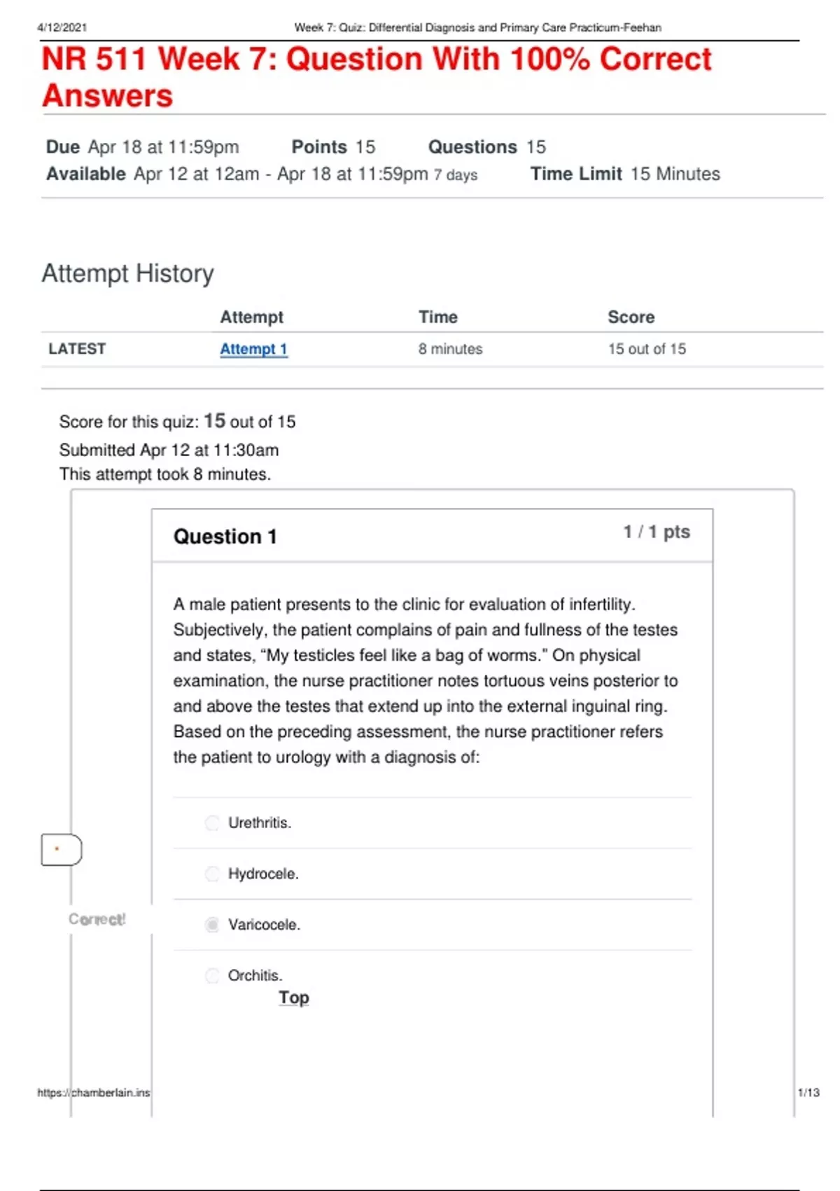 NR 511 Week 7: Question With 100% Correct Answers