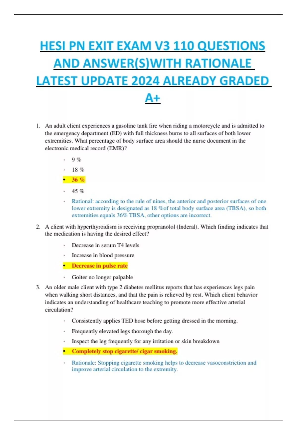 HESI PN EXIT EXAM V3 110 QUESTIONS AND ANSWER(S)WITH RATIONALE LATEST UPDATE 2024 ALREADY GRADED A+