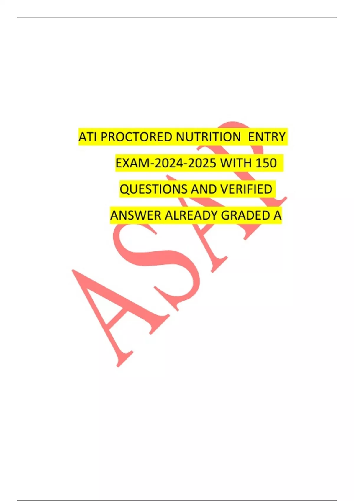 ATI PROCTORED NUTRITION ENTRY EXAM- WITH 150 QUESTIONS AND VERIFIED ANSWER ALREADY GRADED A