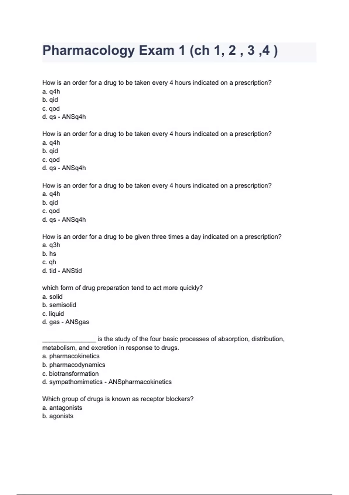 Pharmacology Exam 1 (ch 1, 2 , 3 ,4 ) already graded A+ 2024/2025