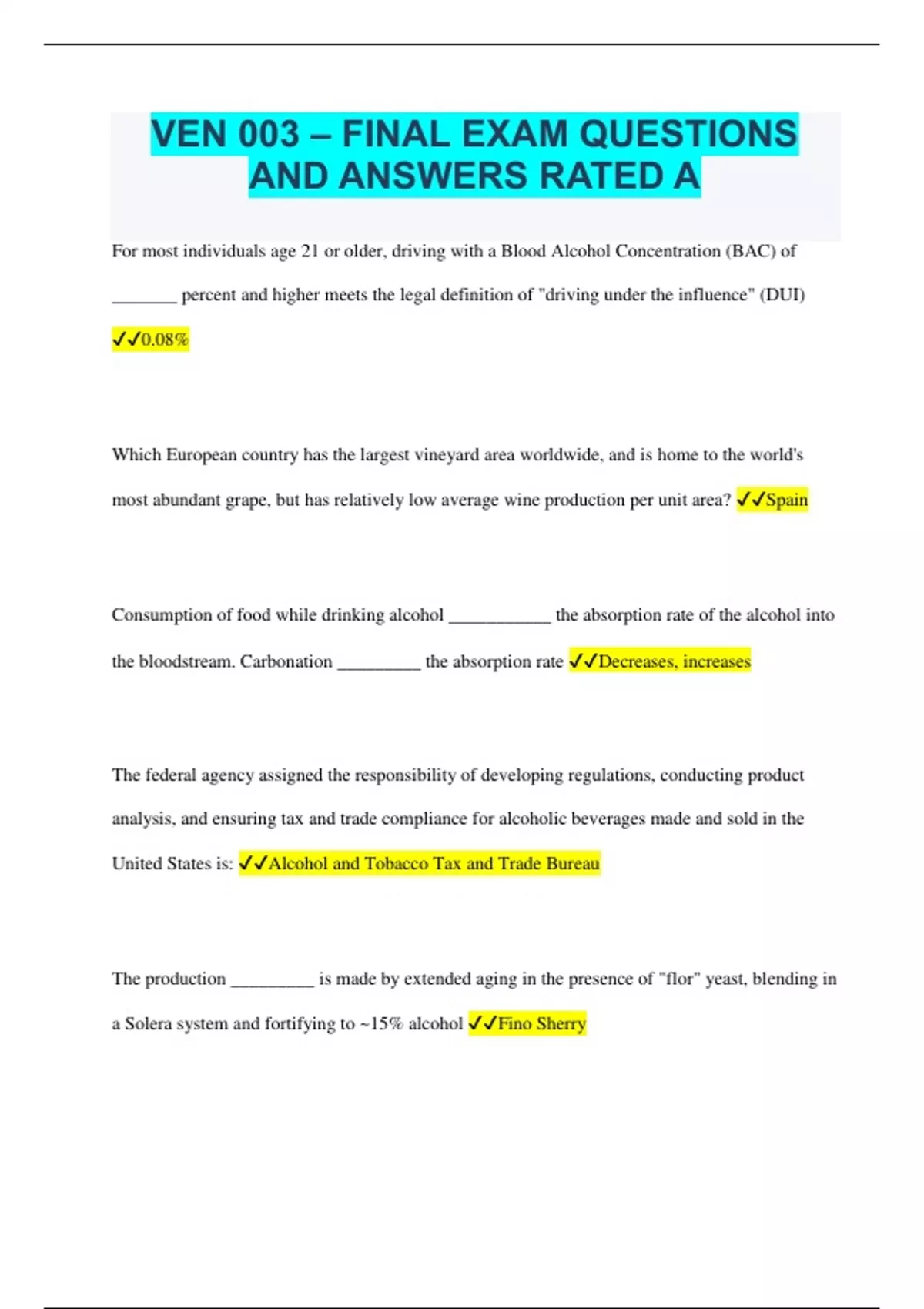 VEN 003 – FINAL EXAM QUESTIONS AND ANSWERS RATED A