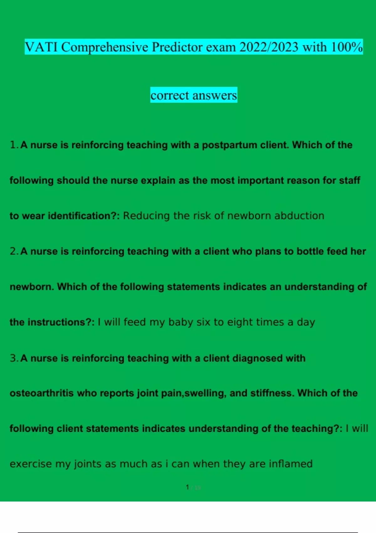 vati comprehensive predictor exam 2023 with 100 c