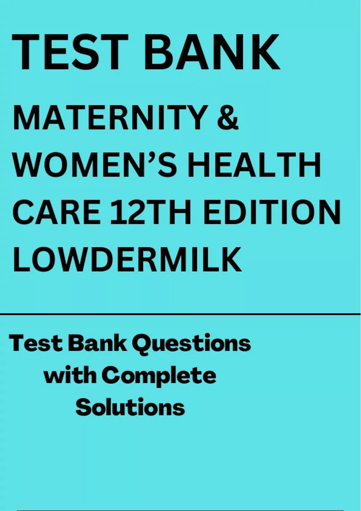 TEST BANK MATERNITY & WOMEN’S HEALTH CARE 12TH EDITION LOWDERMILK Test Bank Questions with Complete Solutions