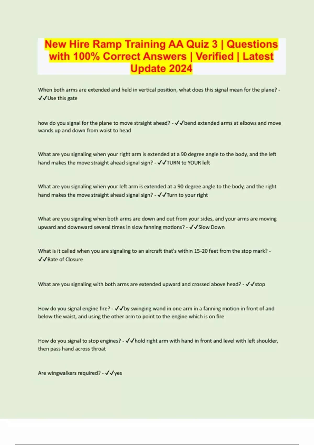 New Hire Ramp Training AA Quiz 3 | Questions with 100% Correct Answers | Verified | Latest Update 2024