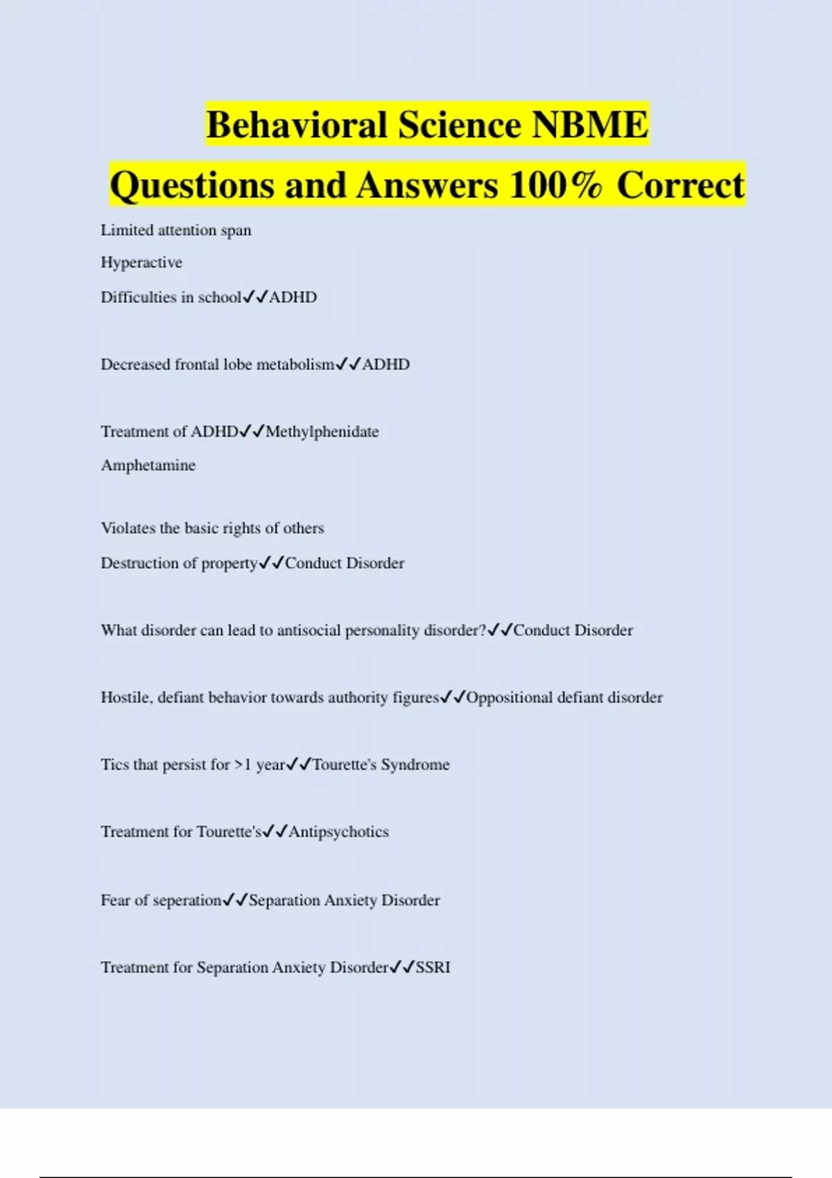 Behavioral Science NBME Questions and Answers 100% Correct