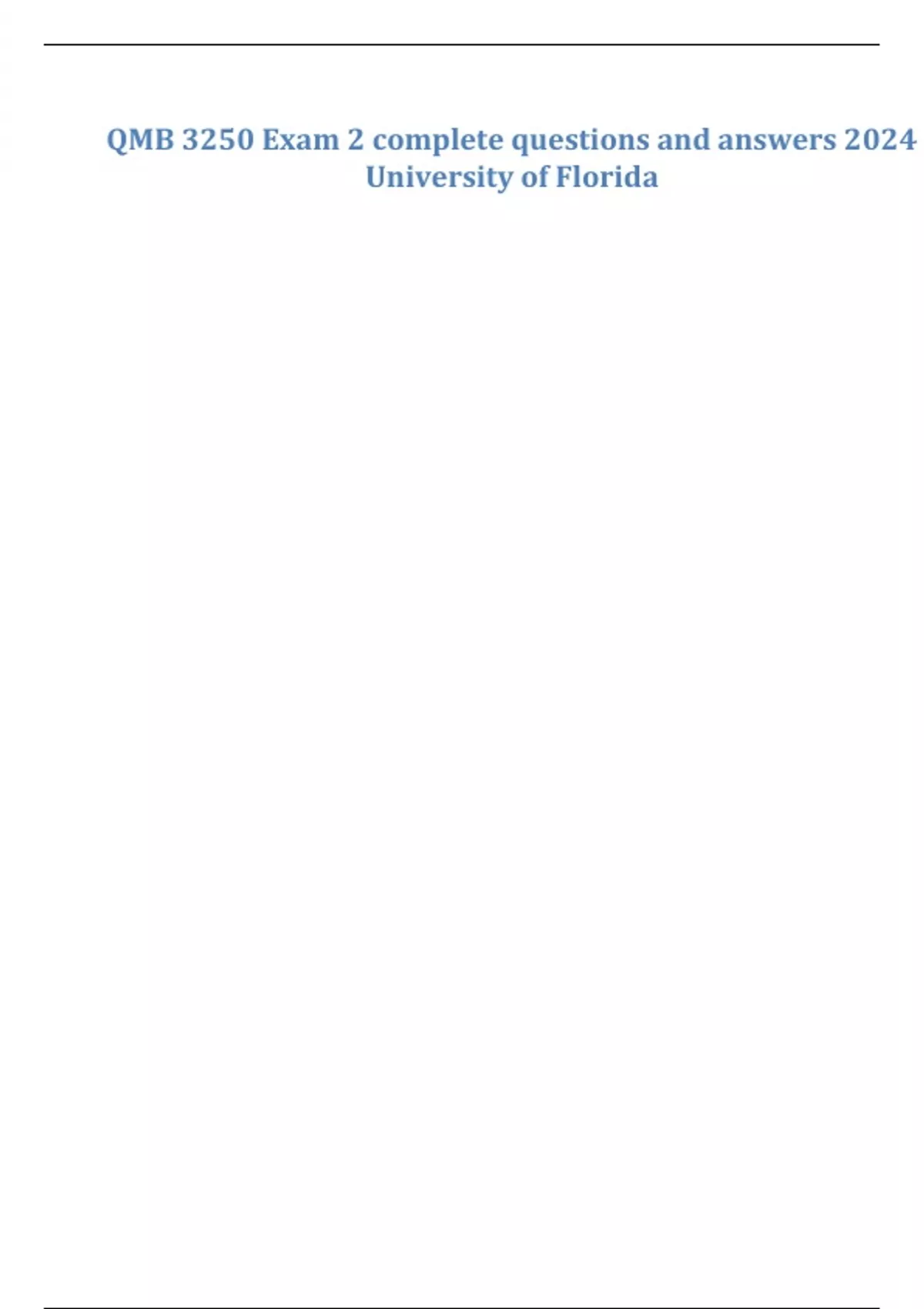 QMB 3250 Exam 2 complete questions and answers 2024 University of Florida