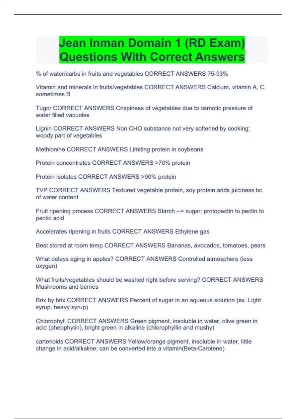 Jean Inman Domain 1 (RD Exam) Questions With Correct Answers