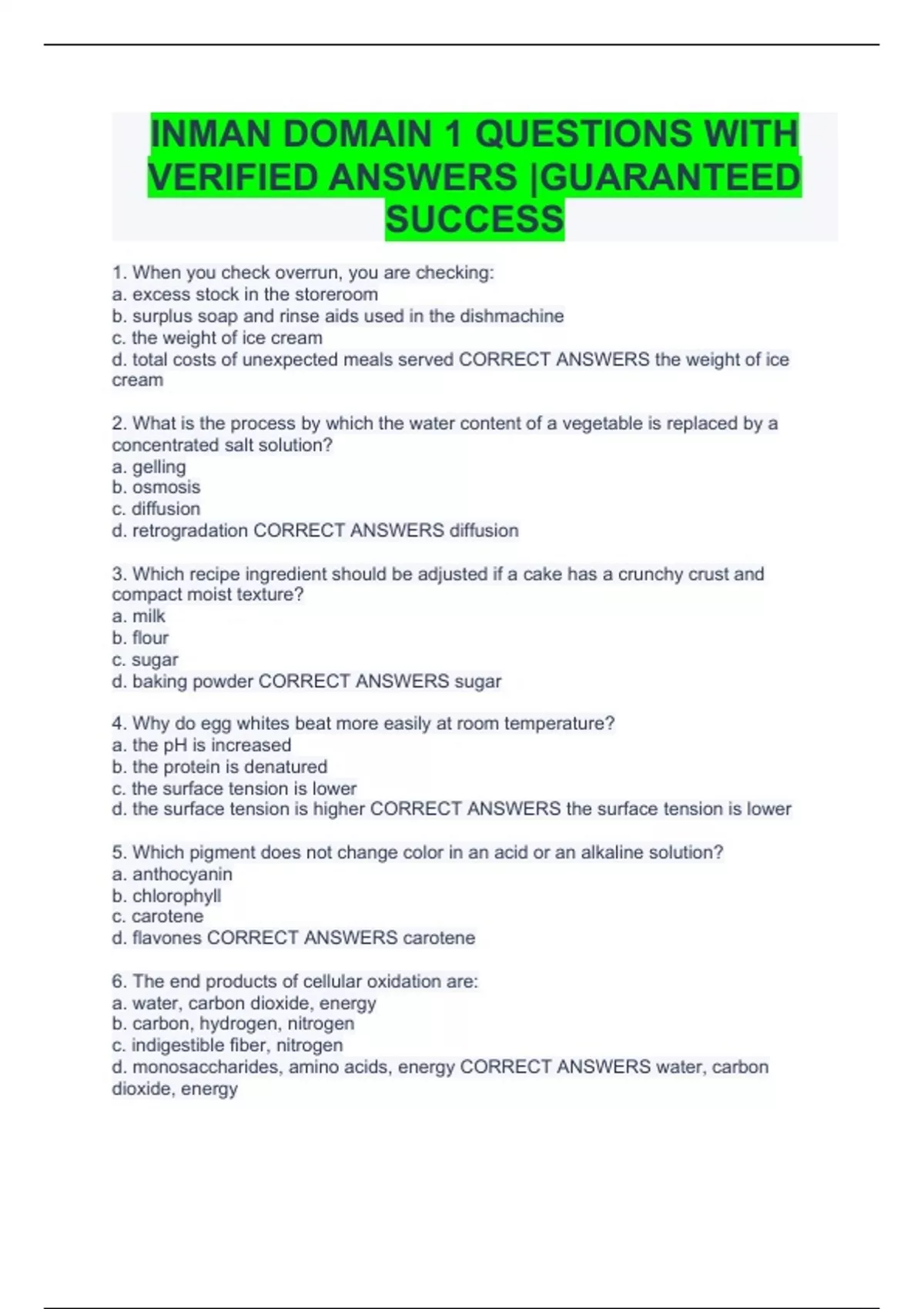 INMAN DOMAIN 1 QUESTIONS WITH VERIFIED ANSWERS |GUARANTEED SUCCESS