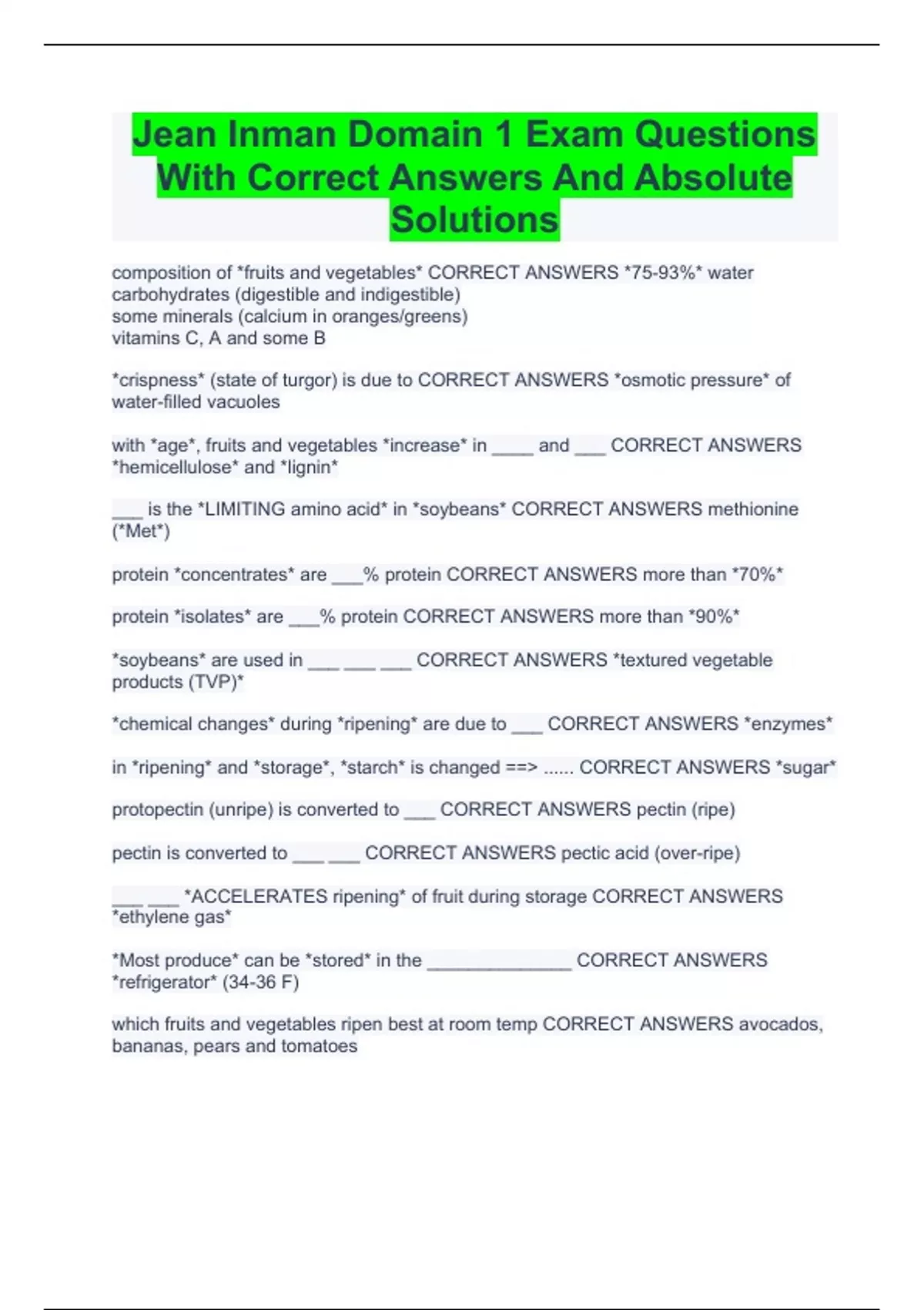 Jean Inman Domain 1 Exam Questions With Correct Answers And Absolute Solutions