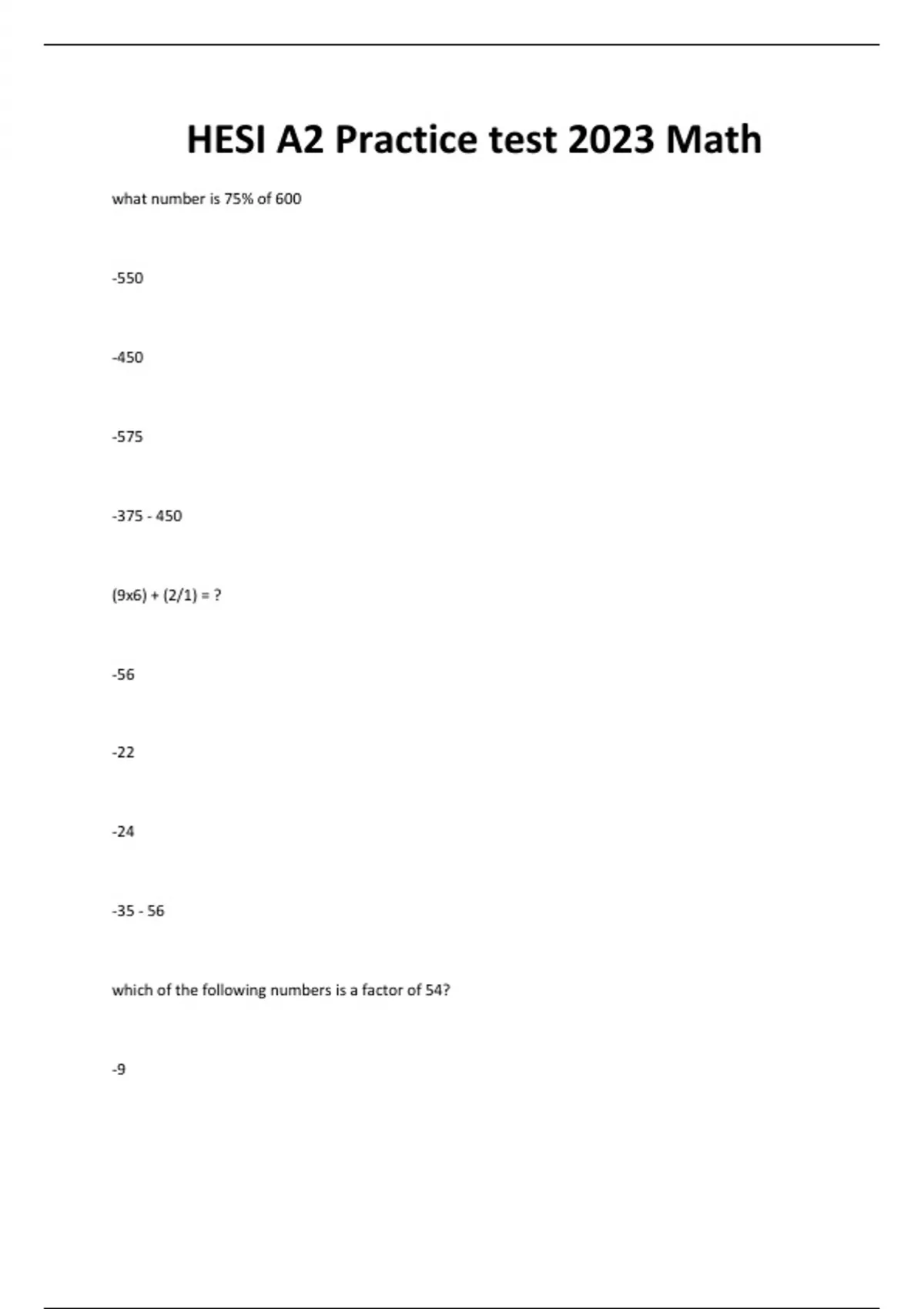 what number is 75% of 600 -550 -450 -575 -375 - 450 (9x6) + (2/1) = ? -56 -22 -24 -35 - 56 which of the following numbers is a factor of 54? -9 -8 -7 -4 - 9 96 x 45=? -3,240 -4,320 -2,340 -4,430 - 4,320 567 + X = 876 solve for X -151 -309 -271 -181 - 309 which fraction is equivalent to the decimal 0.75? -7/8 -3/4 -5/8 -5/7 - 3/4 evaluate the expression 3a +2b + 9 when a=2 and b=4 -21 -23 -24 -23 -27 - 23