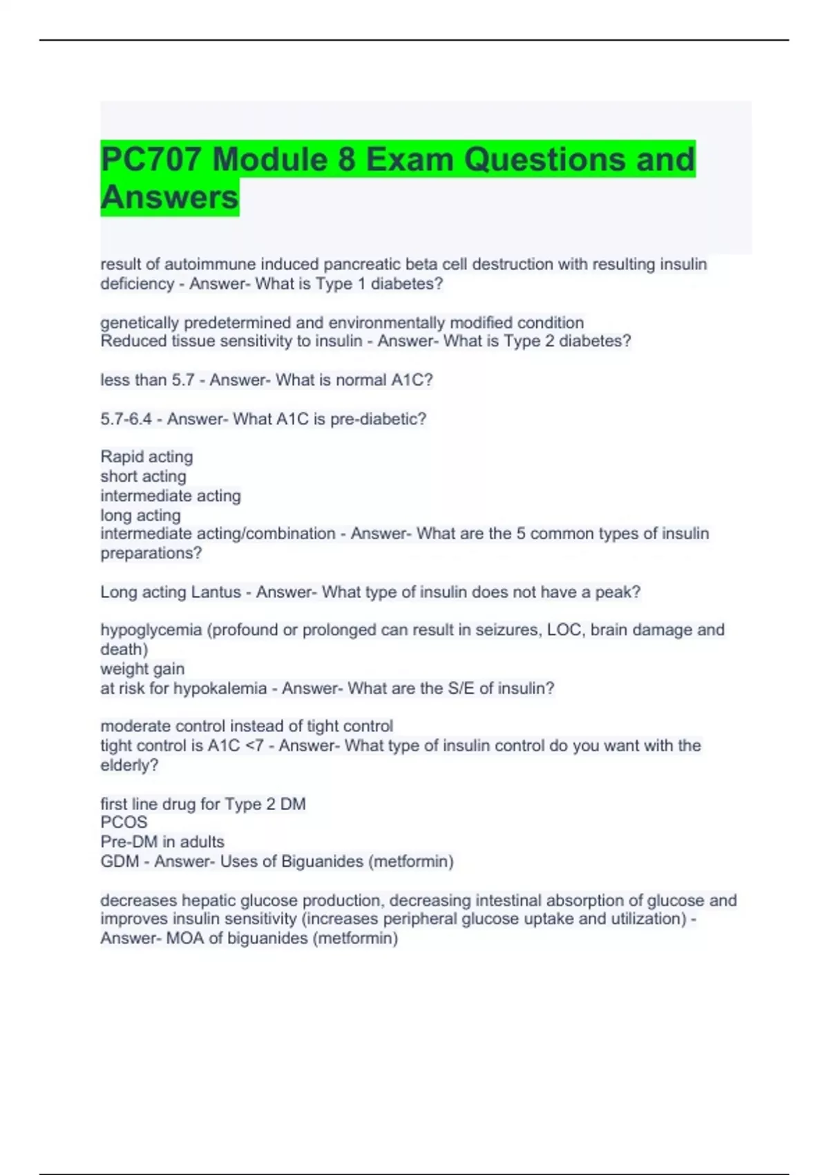 PC707 Module 8 Exam Questions and Answers