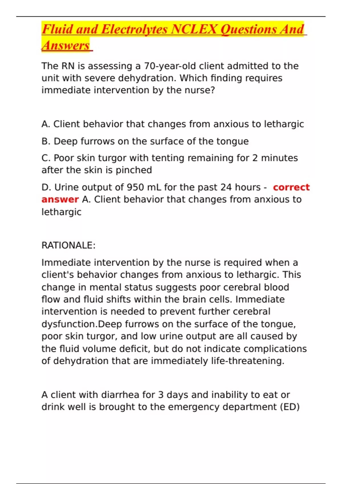 Fluid and Electrolytes NCLEX Questions And Answers