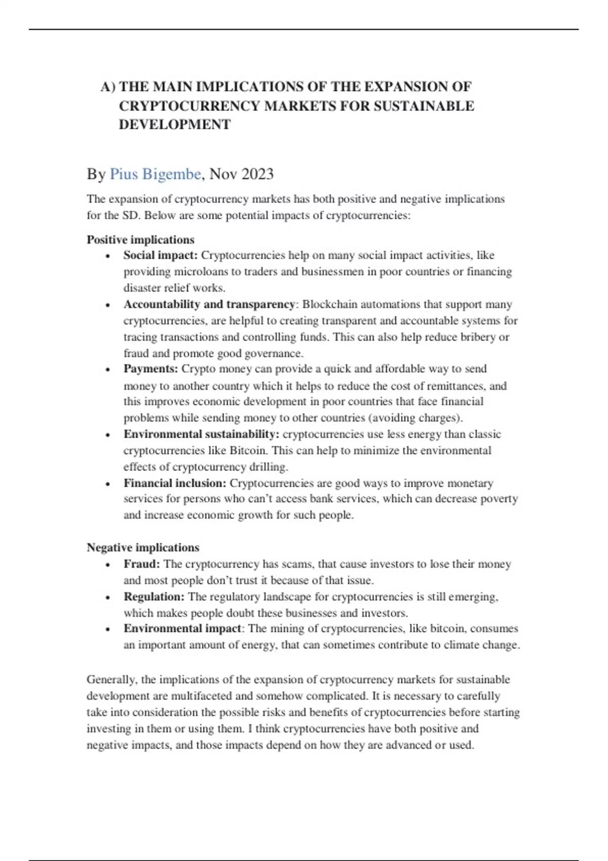 Generally, the implications of the expansion of cryptocurrency markets for sustainable