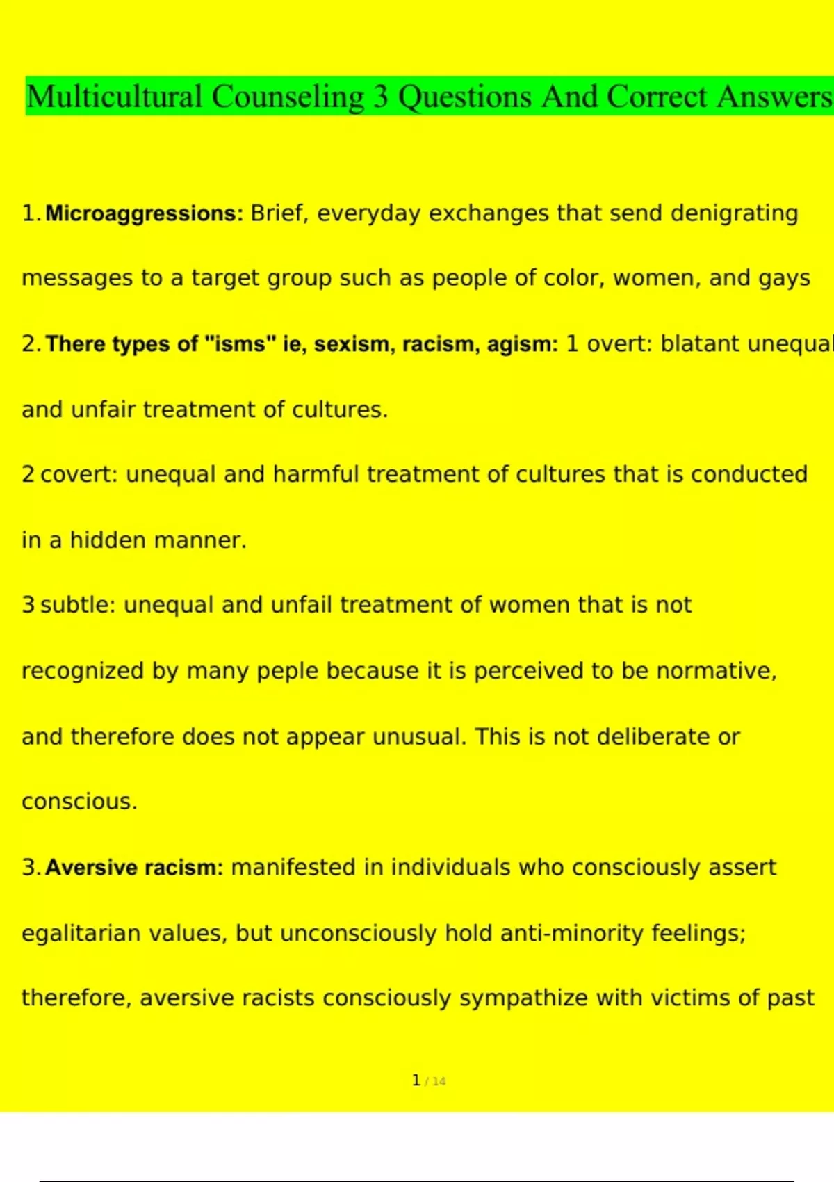 Multicultural Counseling 3 correct answers
