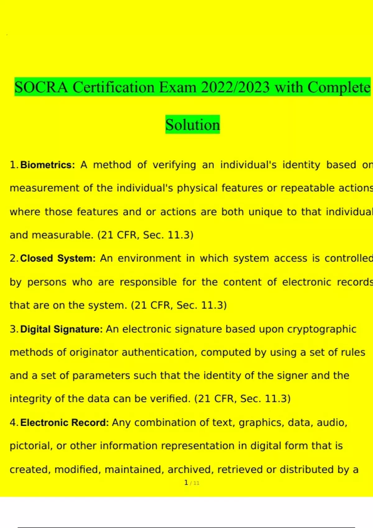 socra certification exam with complete s