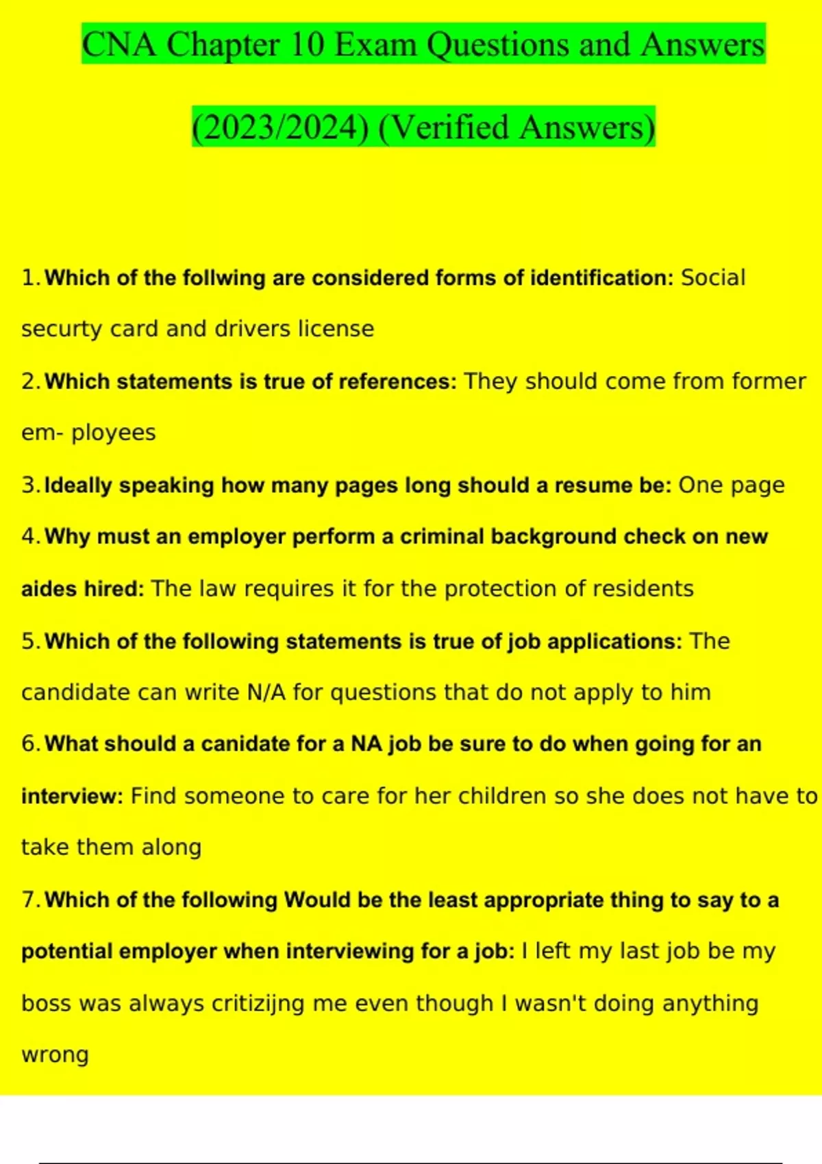 cna chapter 10 exam questions and answers