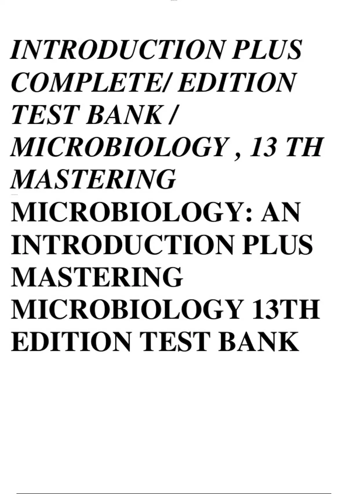 MICROBIOLOGY: AN INTRODUCTION PLUS MASTERING MICROBIOLOGY 13TH EDITION TEST BANK(Tortora et al.)