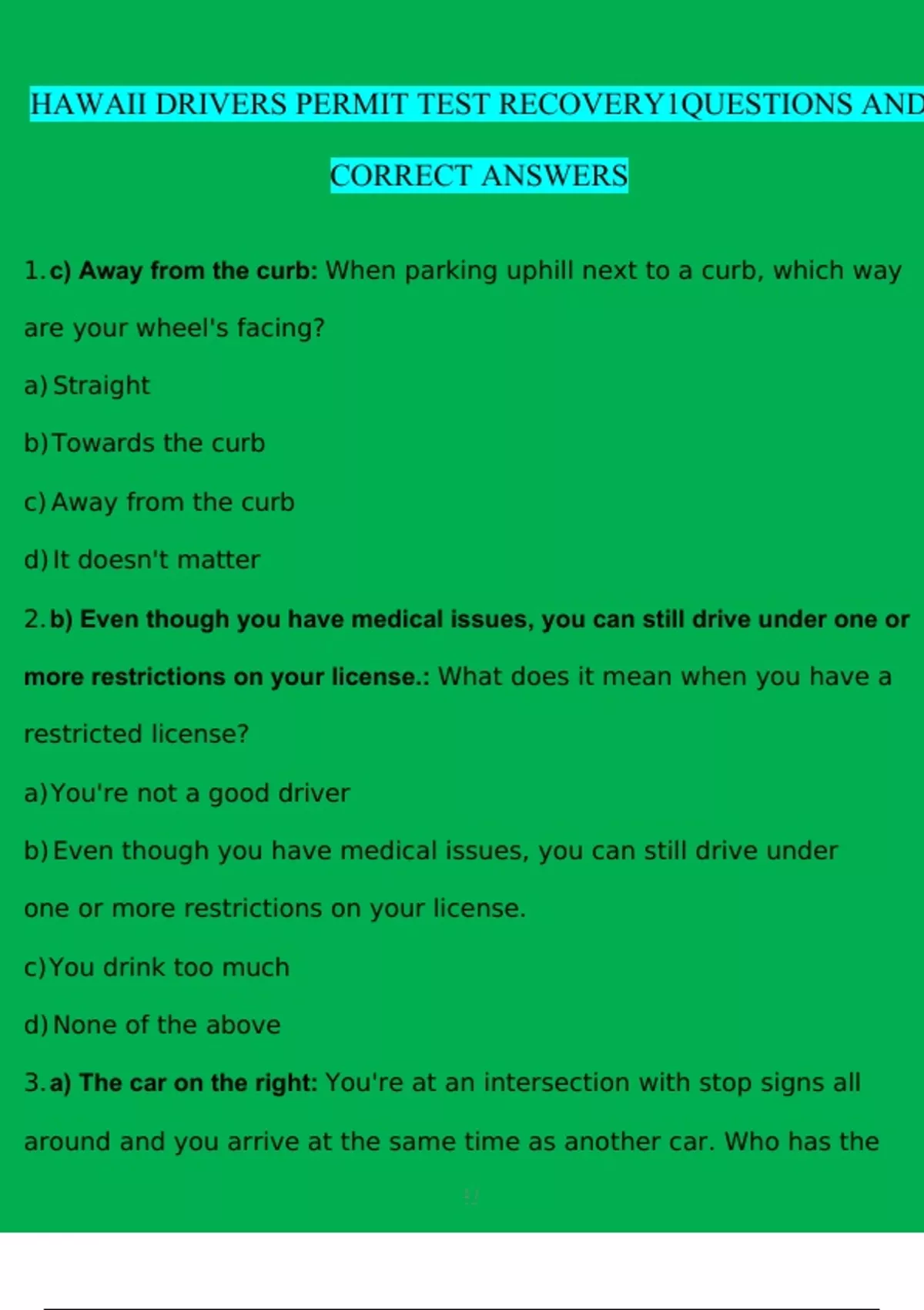 HAWAII DRIVERS PERMIT TEST RECOVERY 1