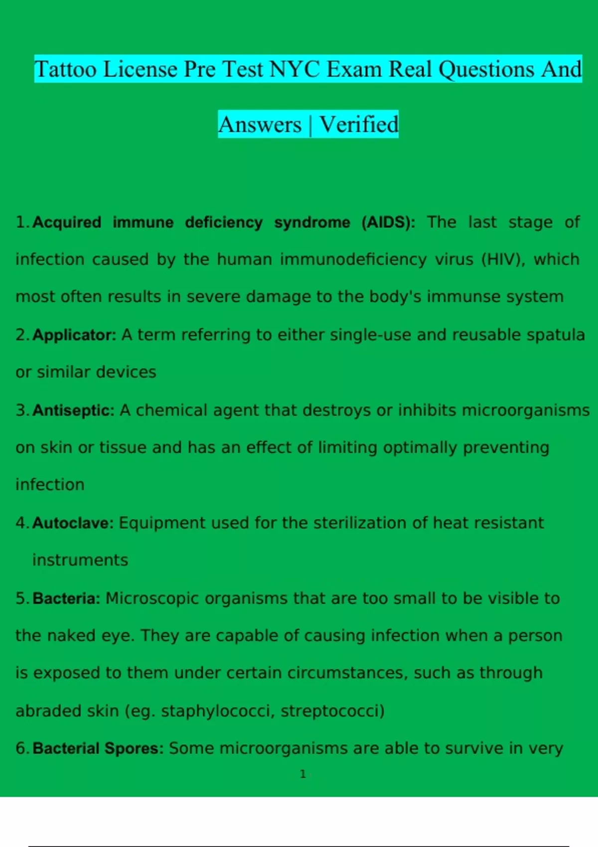 Tattoo License Pre Test NYC Exam Real Questions And Answers