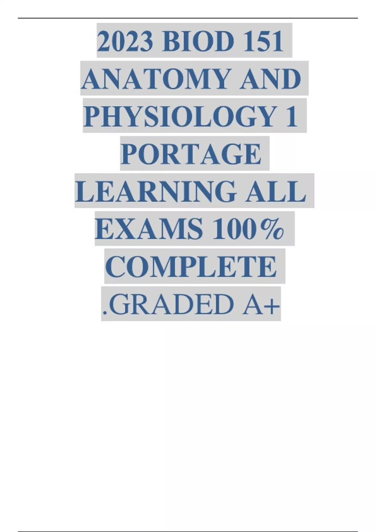 BIOD 151 Anatomy and Physiology 1 All EXAMS-with latest solutions-