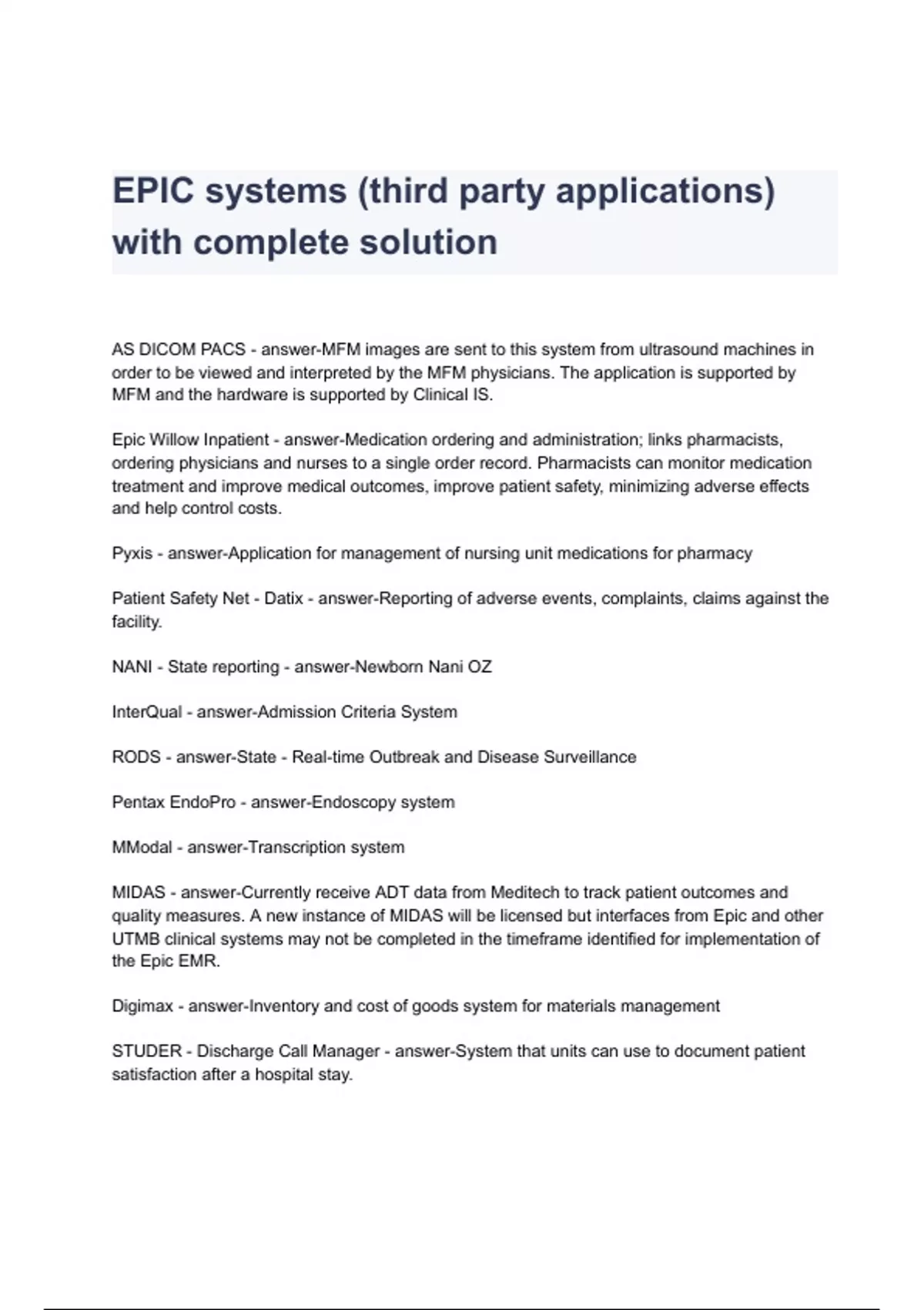 EPIC systems (third party applications) with complete solution