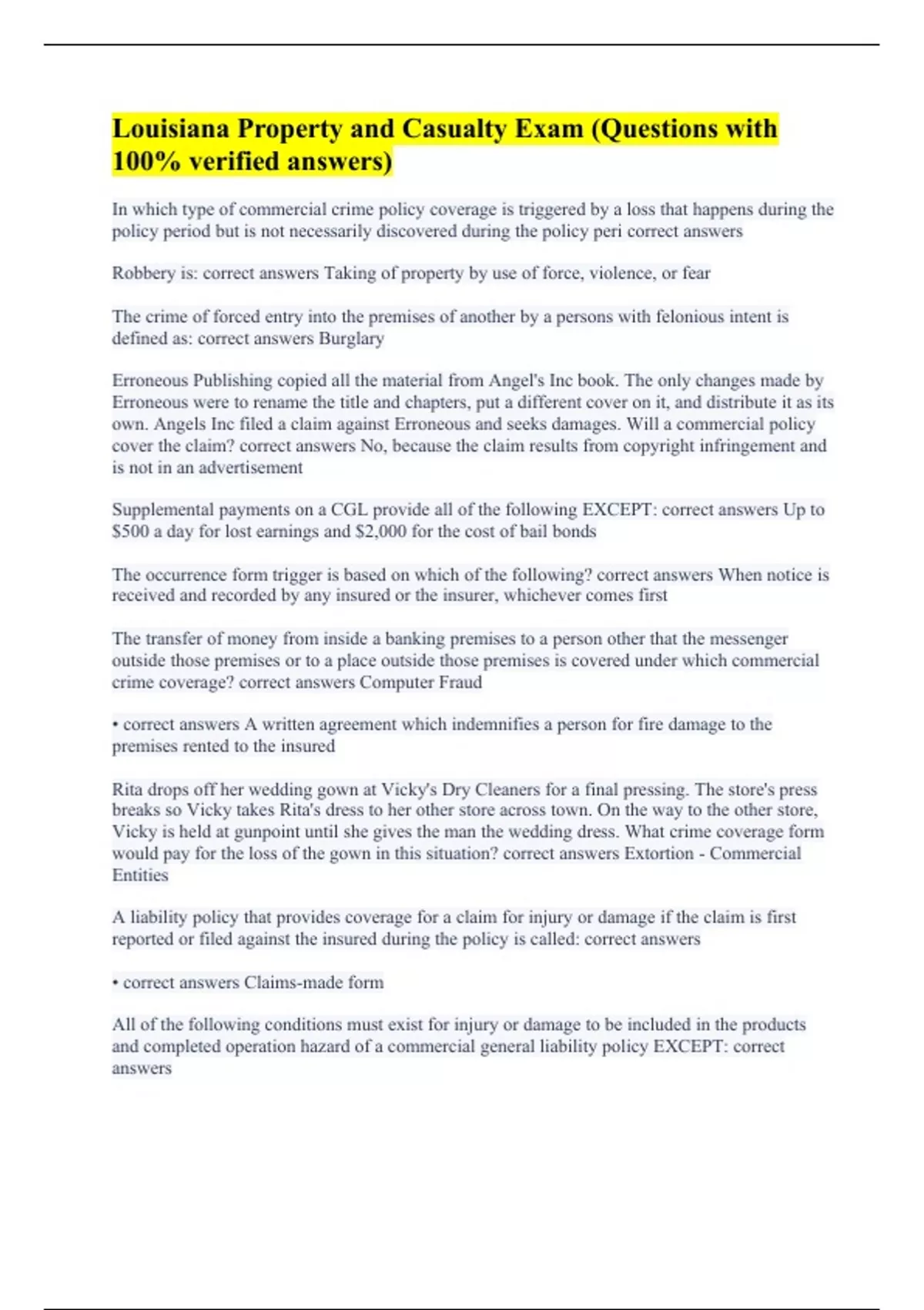 Louisiana Property and Casualty Exam (Questions with 100% verified answers)