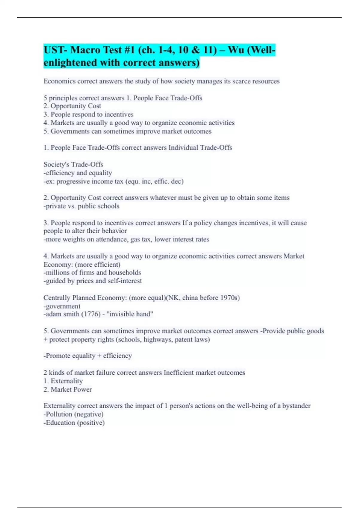 UST- Macro Test #1 (ch. 1-4, 10 & 11) – Wu (Well-enlightened with correct answers)