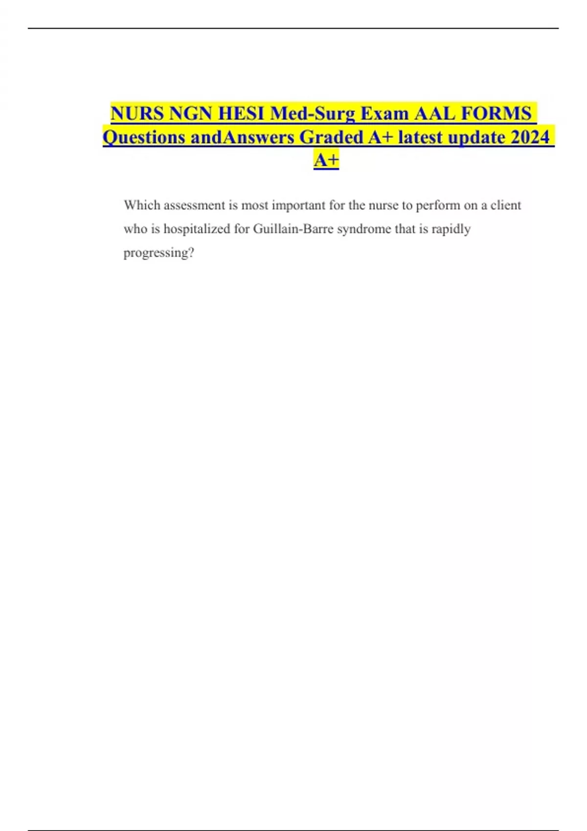 NURS NGN HESI Med-Surg Exam AAL FORMS Questions and Answers Graded A+ latest update 2024 A+