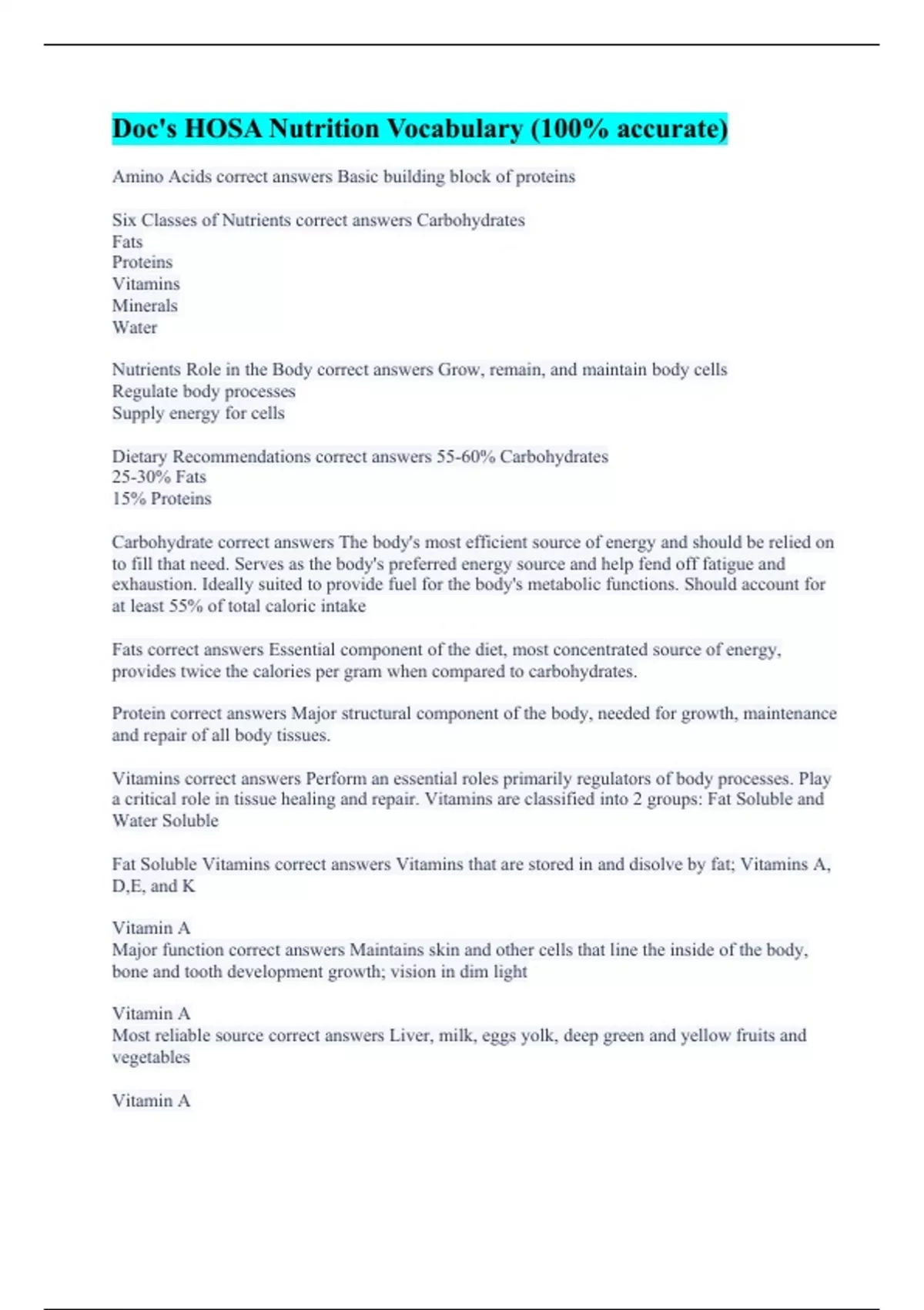 Doc's HOSA Nutrition Vocabulary (100% accurate)