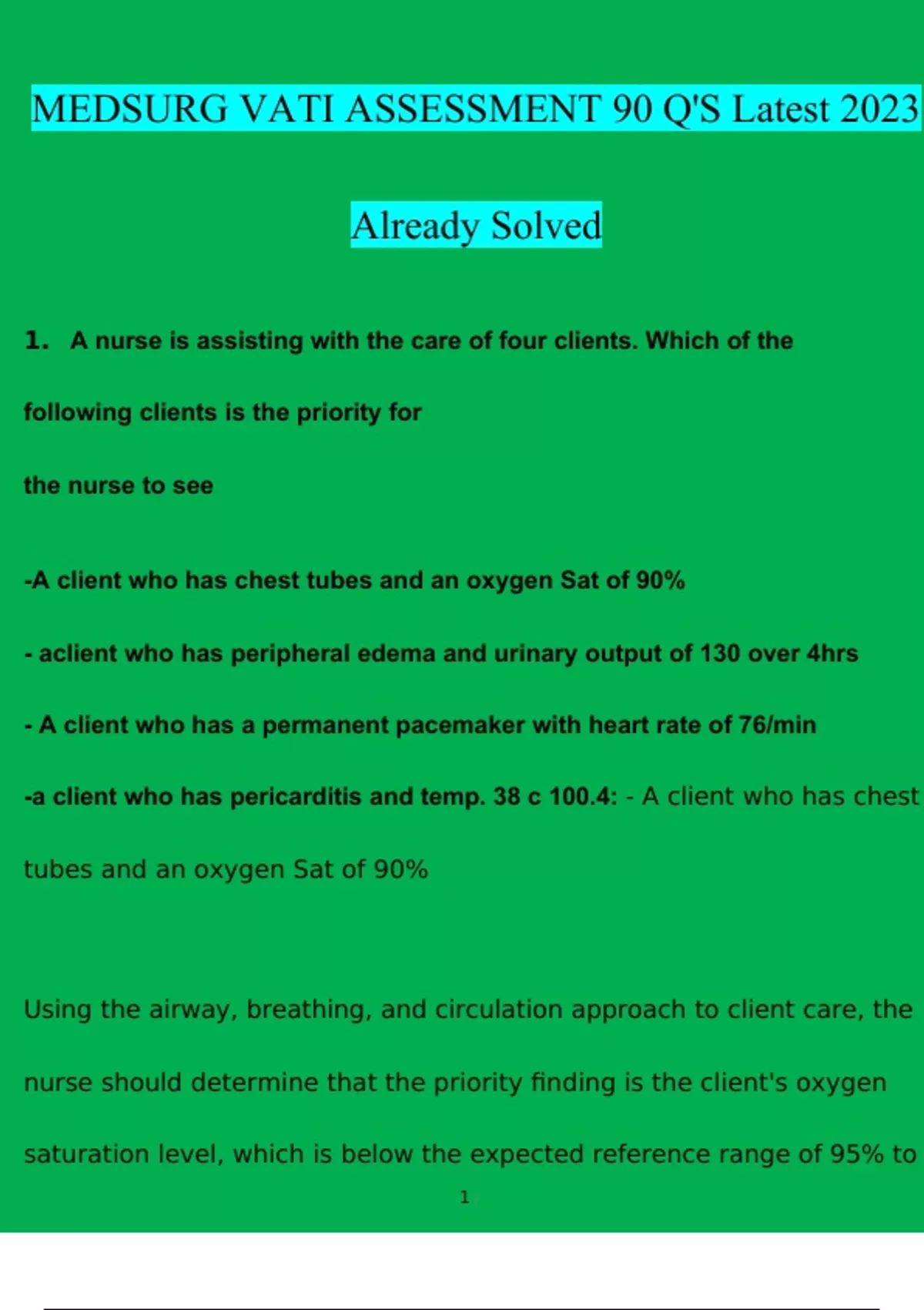 MEDSURG VATI ASSESSMENT 90 Q'S EXAM FULLY SOLVED