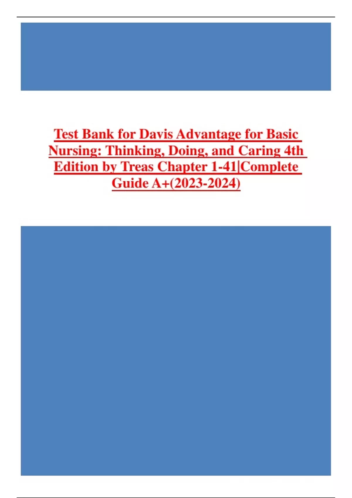 Test Bank for Davis Advantage for Basic Nursing: Thinking, Doing, and Caring 3rd Edition by Treas Chapter 1-41|Complete Guide A+ Test Bank for Davis Advantage for Basic Nursing: Thinking, Doing, and Caring 3rd Edition by Treas