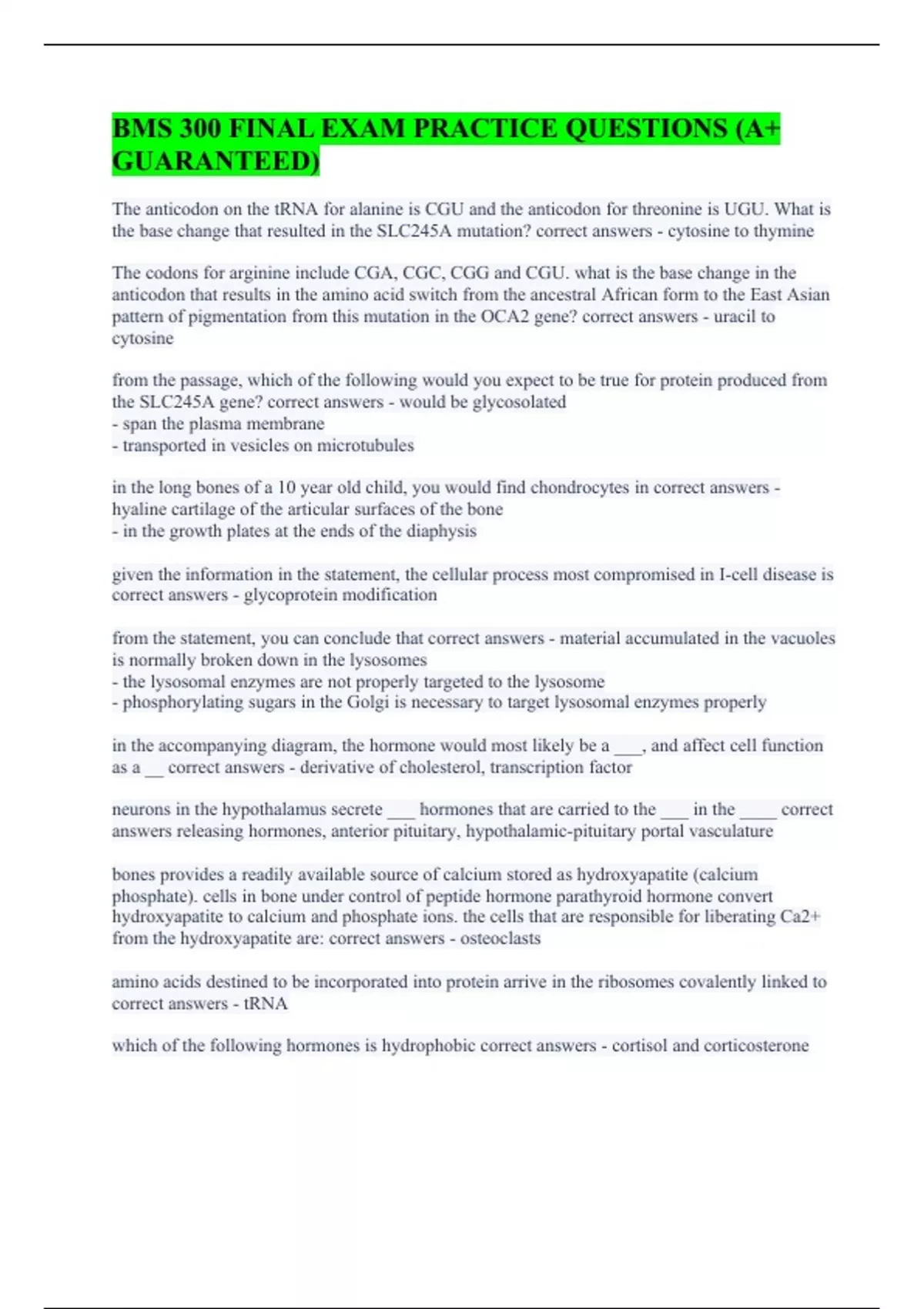 BMS 300 FINAL EXAM PRACTICE QUESTIONS (A+ GUARANTEED)