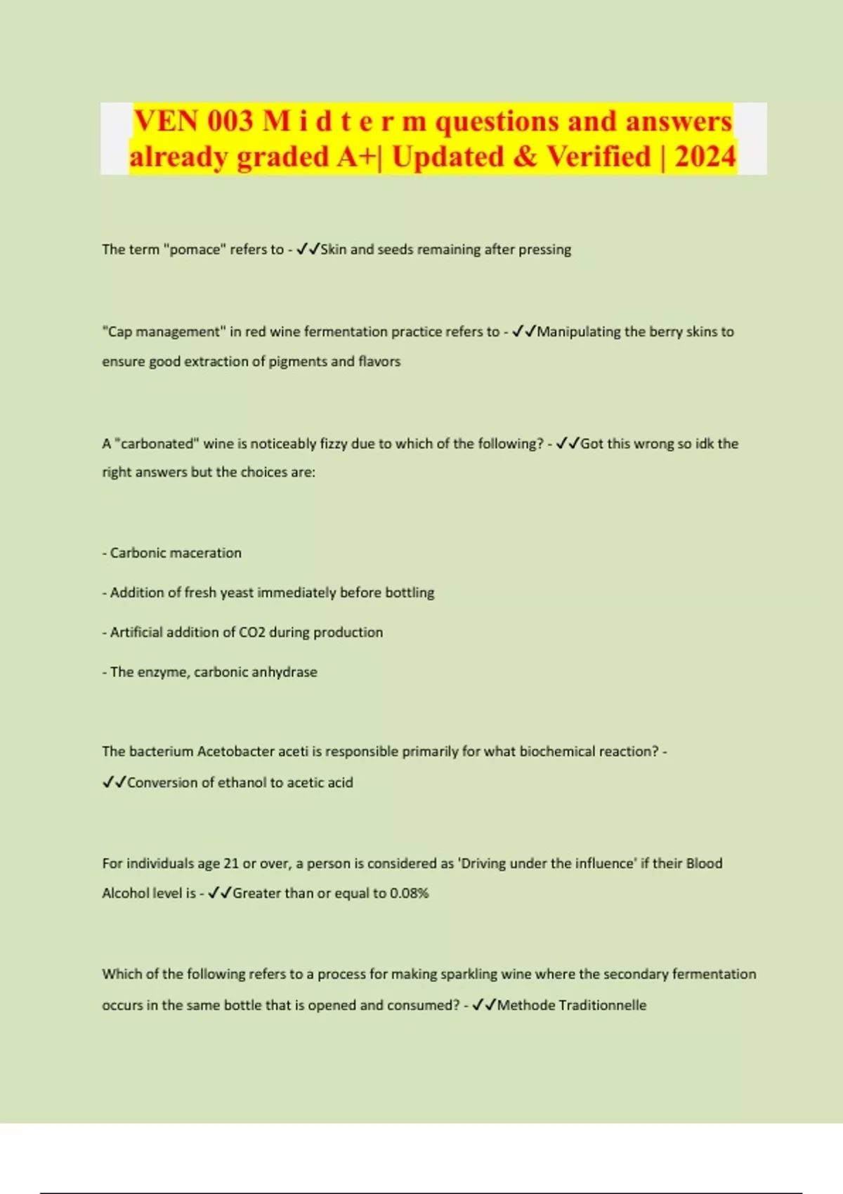 VEN 003 M i d t e r m questions and answers already graded A+| Updated & Verified | 2024