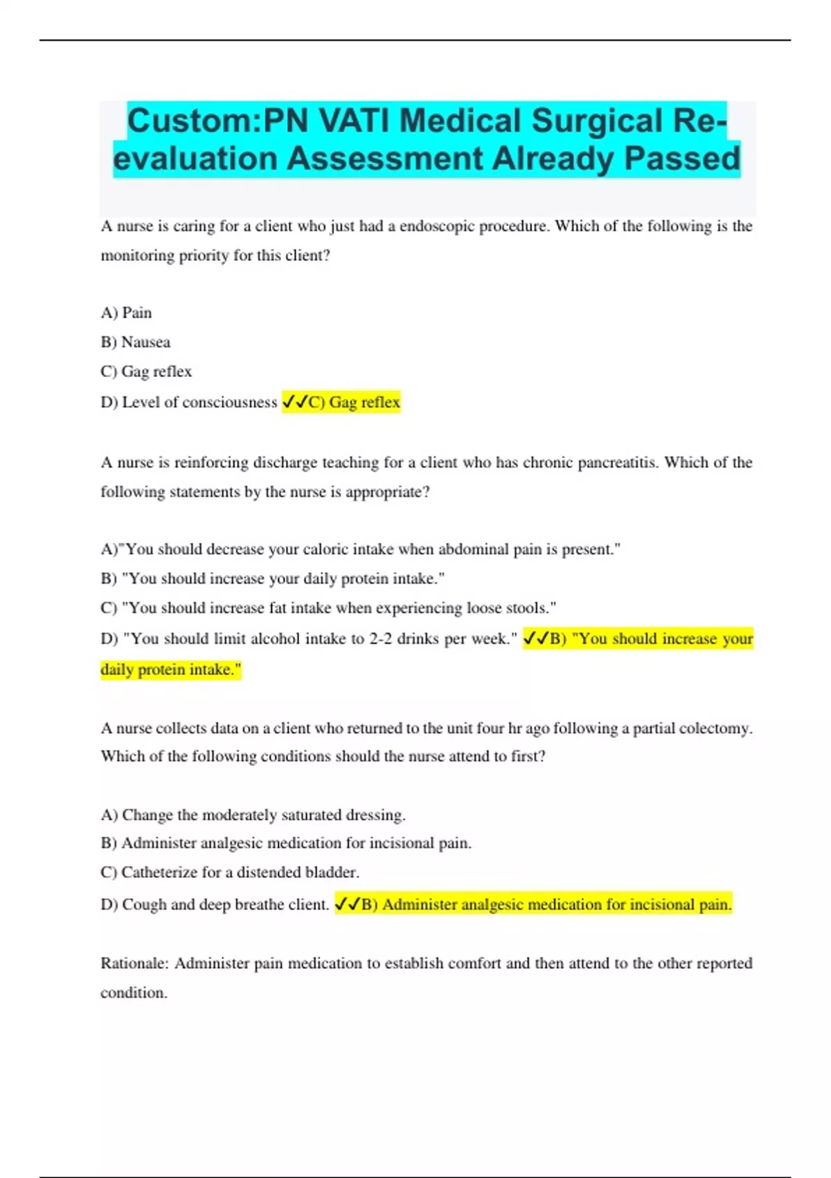 Custom:PN VATI Medical Surgical Re- evaluation Assessment Already Passed
