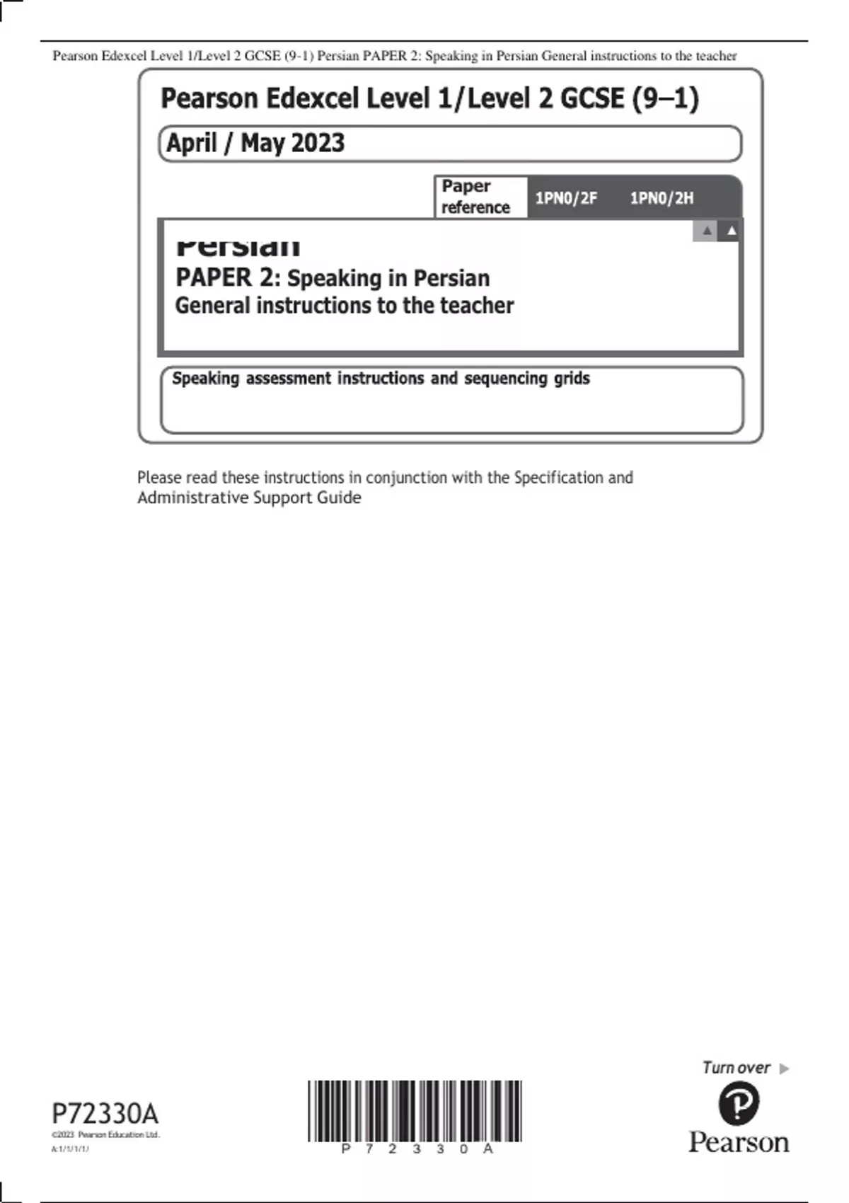 Pearson Edexcel Level 1/Level 2 GCSE (9–1) Persian PAPER 2: Speaking in Persian General instructions to the teacher