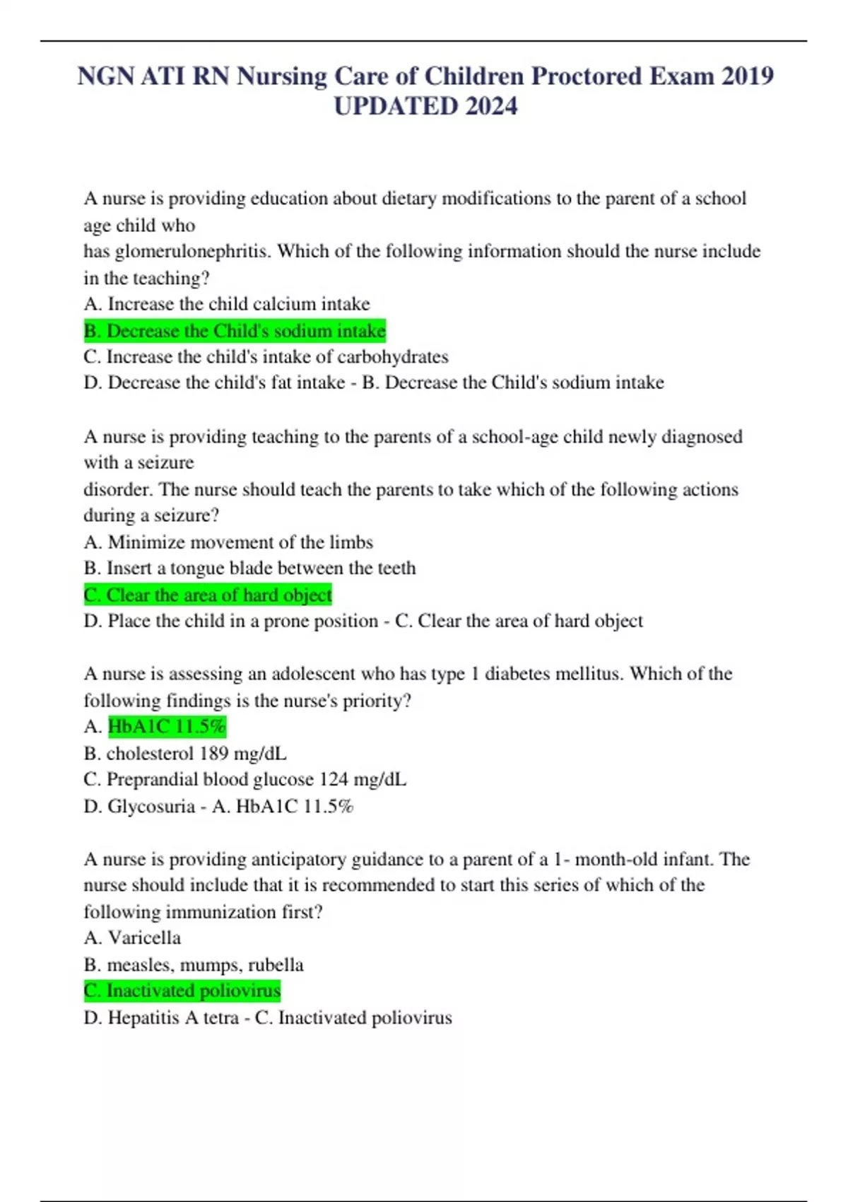 ngn ati rn nursing care of children proctored exam