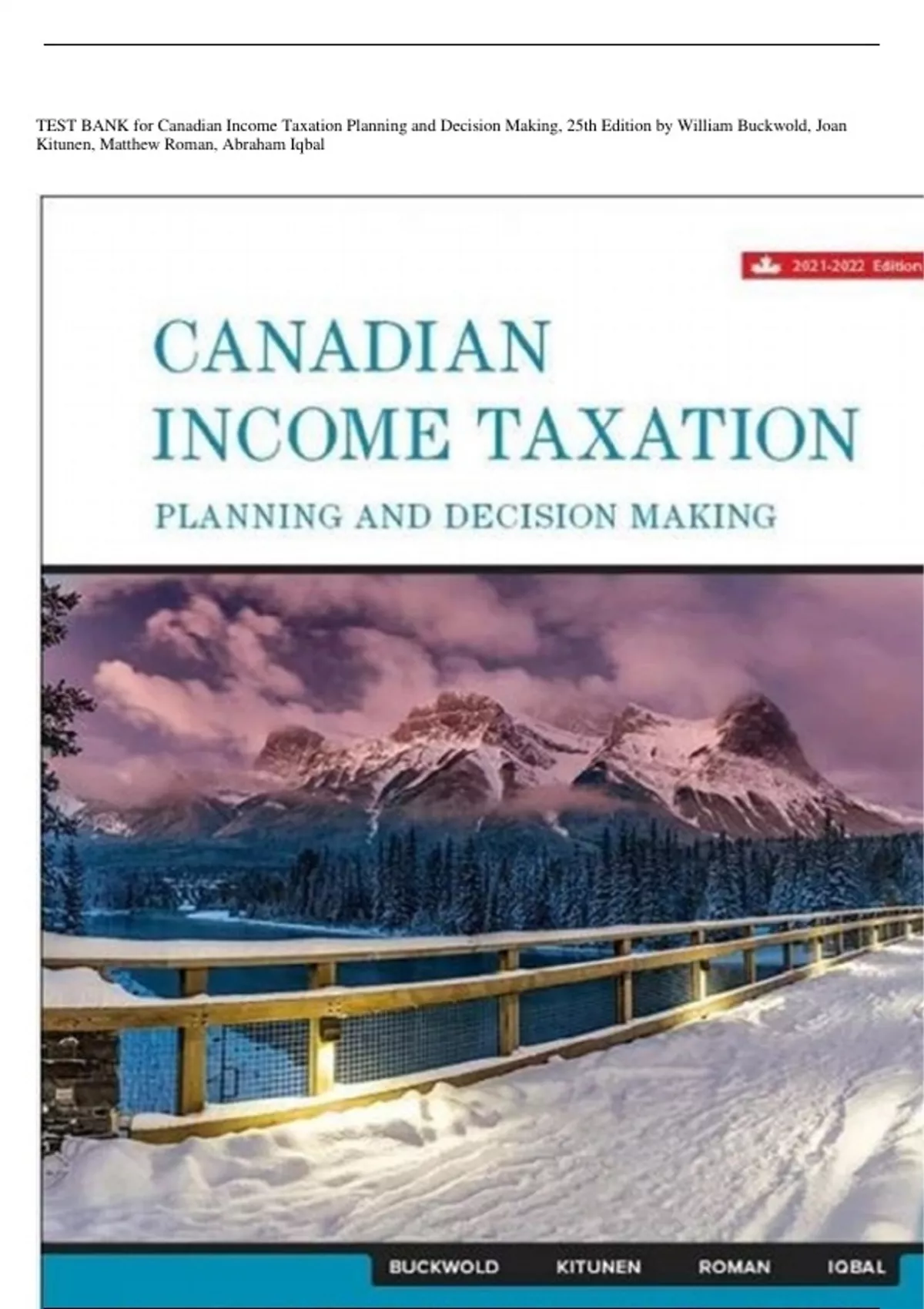 TEST BANK for Canadian Income Taxation Planning and Decision Making, 25th Edition by William Buckwold, Joan Kitunen, Matthew Roman, Abraham Iqbal