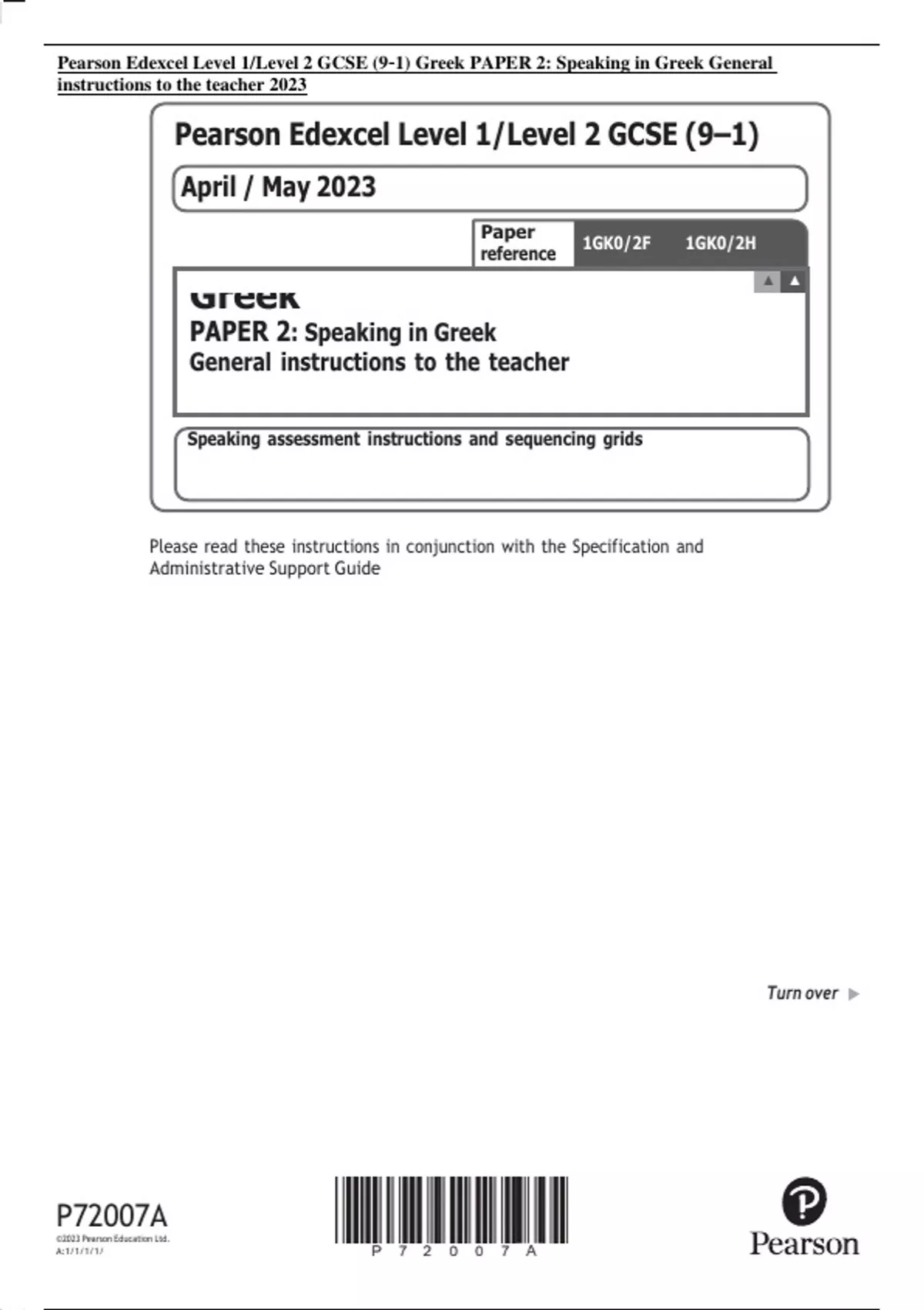 Pearson Edexcel Level 1/Level 2 GCSE (9–1) Greek PAPER 2: Speaking in Greek General
