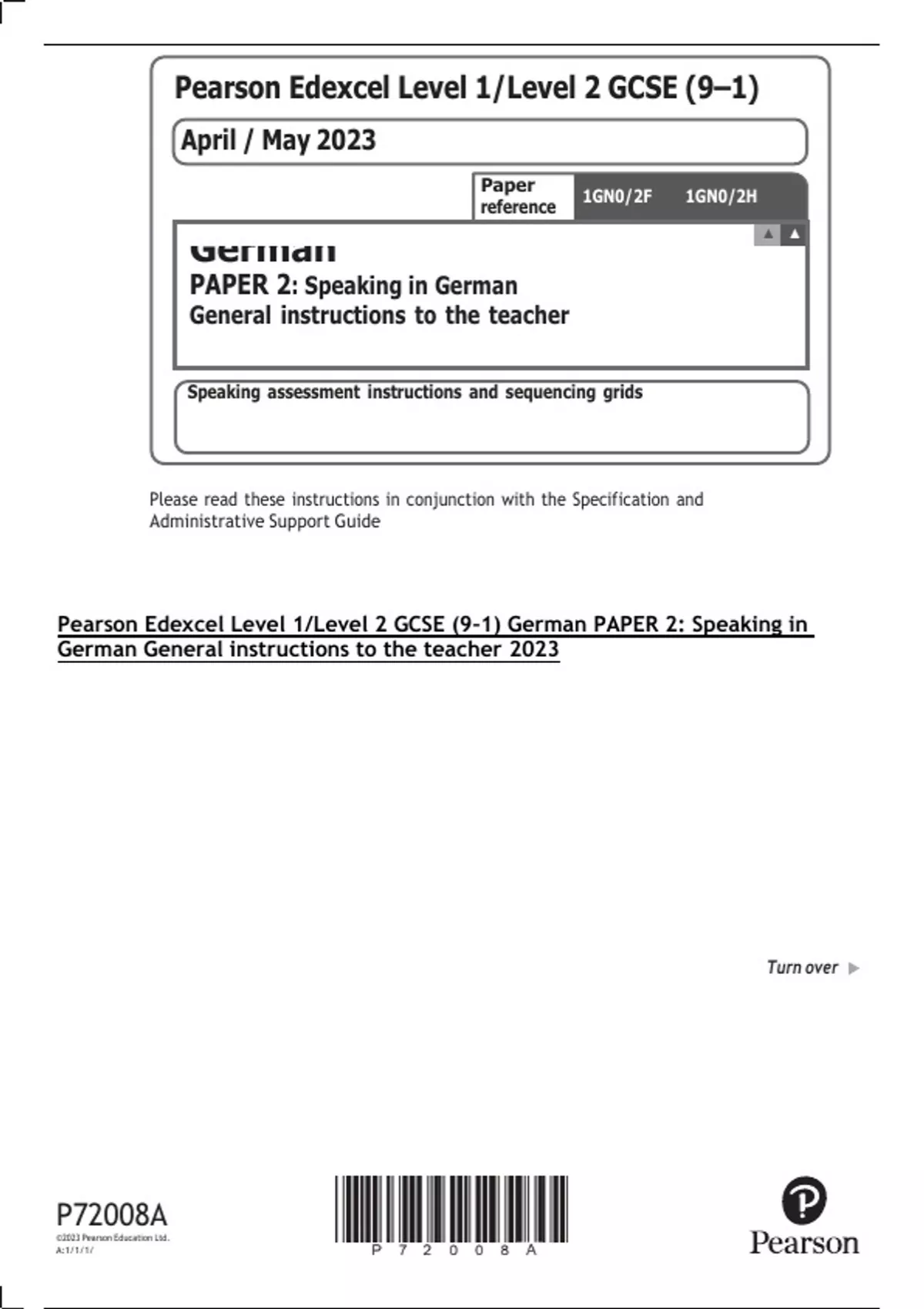 Pearson Edexcel Level 1/Level 2 GCSE (9–1) German PAPER 2: Speaking in