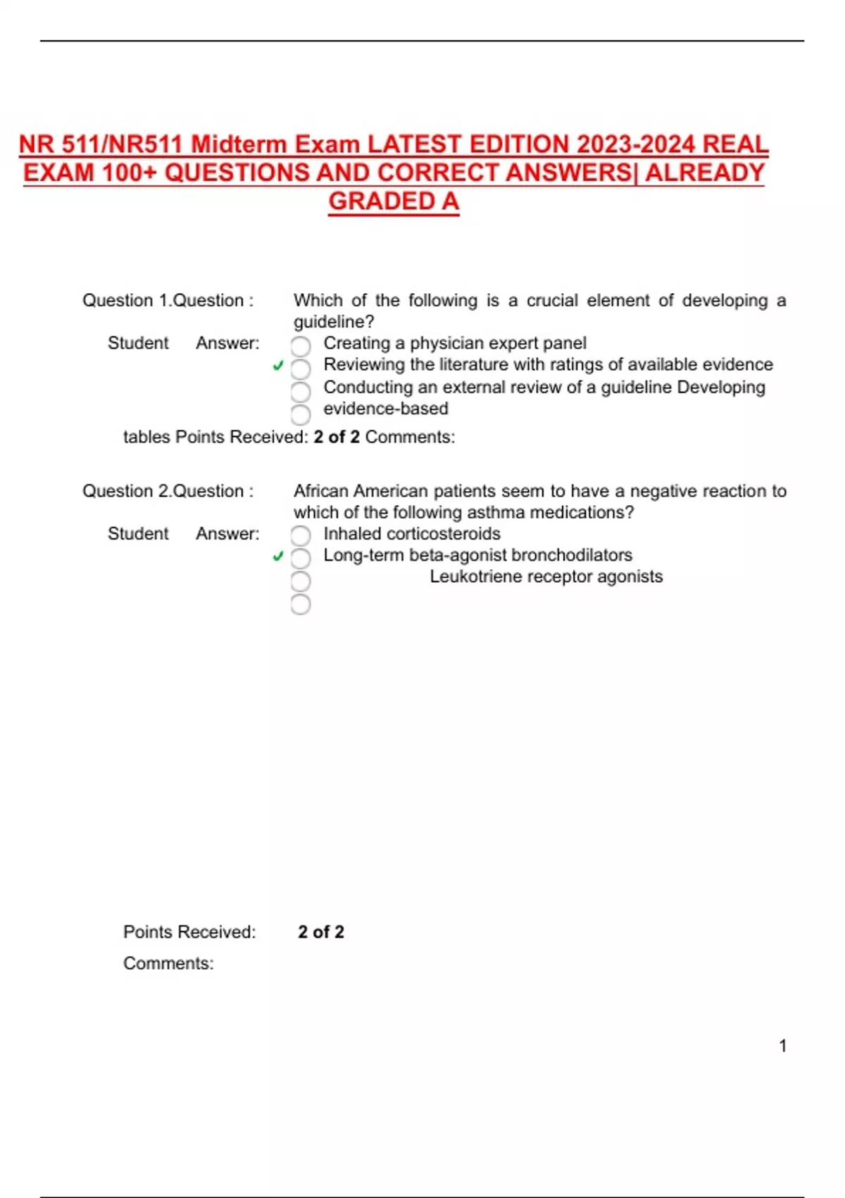NR 511/NR511 Midterm Exam LATEST EDITION REAL EXAM 100+ QUESTIONS AND CORRECT ANSWERS| ALREADY GRADED A