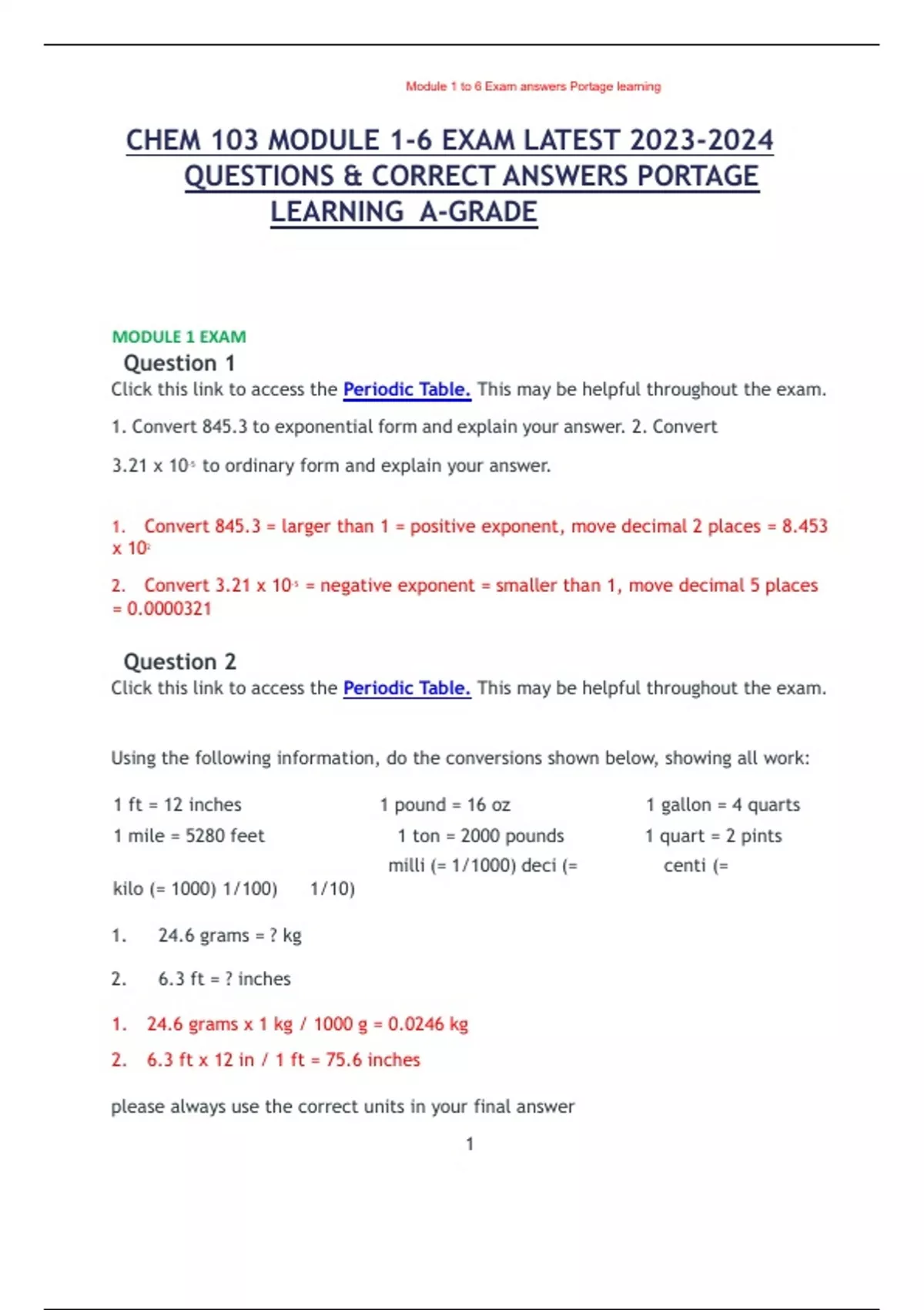 CHEM 103 MODULE 1-6 EXAM LATEST QUESTIONS & CORRECT ANSWERS PORTAGE LEARNING A-GRADE