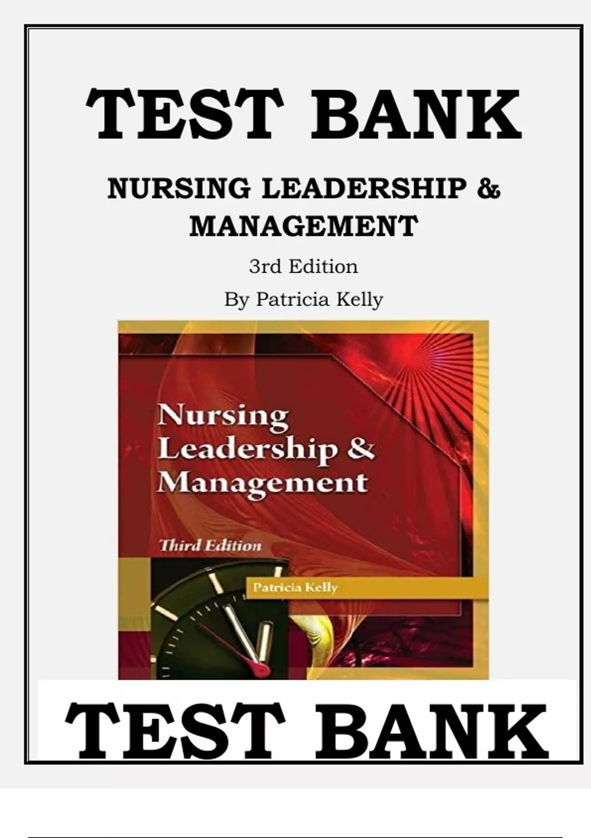 NURSING LEADERSHIP & MANAGEMENT 3RD EDITION BY PATRICIA KELLY TEST BANK Latest Verified Review 2024 Practice Questions and Answers for Exam Preparation, 100% Correct with Explanations, Highly Recommended, Download to Score A+ Nursing Leadership & Management 3rd Edition by Patricia Kelly Test Bank Table of Contents: Unit I: NURSING LEADERSHIP AND MANAGEMENT. Chapter 1. Nursing Leadership and Management. Chapter 2. The Healthcare Environment. Chapter 3. Organizational Behavior and Magnet Hospitals. Chapter 4. Basic Clinical Healthcare Economics. Chapter 5. Evidence-Based Health Care. Chapter 6. Nursing and Healthcare Informatics. Chapter 7. Population Based Healthcare Practice. Unit II: LEADERSHIP AND MANAGEMENT OF THE INTERDISCIPLINARY TEAM. Chapter 8. Personal and Interdisciplinary Communication. Chapter 9. Politics and Consumer Partnerships. Chapter 10. Strategic Planning and organizing Patient Care. Chapter 11. Effective Team Building. Chapter 12. Power. Chapter 13. Change, Innovation, and Conflict Management. Unit III: LEADERSHIP AND MANAGEMENT OF PATIENT- CENTERED CARE. Chapter 14. Budget Concepts for Patient Care. Chapter 15. Effective Staffing. Chapter 16. Delegation of Patient Care. Chapter 17. Organization of Patient Care Management. Chapter 18. Time Management and Setting Patient Care Priorities. Chapter 19. Patient and Health Care Education. Unit IV: QUALITY IMPROVEMENT OF PATIENT OUTCOMES. Chapter 20. Managing Outcomes Using an Organizational Quality Improvement Model. Chapter 21. Evidence Based Strategies to Improve Patient Care Outcomes. Chapter 22. Decision Making and Critical Thinking. Chapter 23. Legal Aspects of Health Care. Chapter 24. Ethical Aspects of Health Care. Chapter 25. Culture, Generational Differences, and Spirituality. Unit V: LEADERSHIP AND MANAGEMENT OF SELF AND THE FUTURE. Chapter 26. Collective Bargaining. Chapter 27. Career Planning. Chapter 28. Nursing Job Opportunities. Chapter 29. Your First Job. Chapter 30. Healthy Living: Balancing Personal and Professional Needs. Chapter 31. NCLEX Preparation and Professionalism