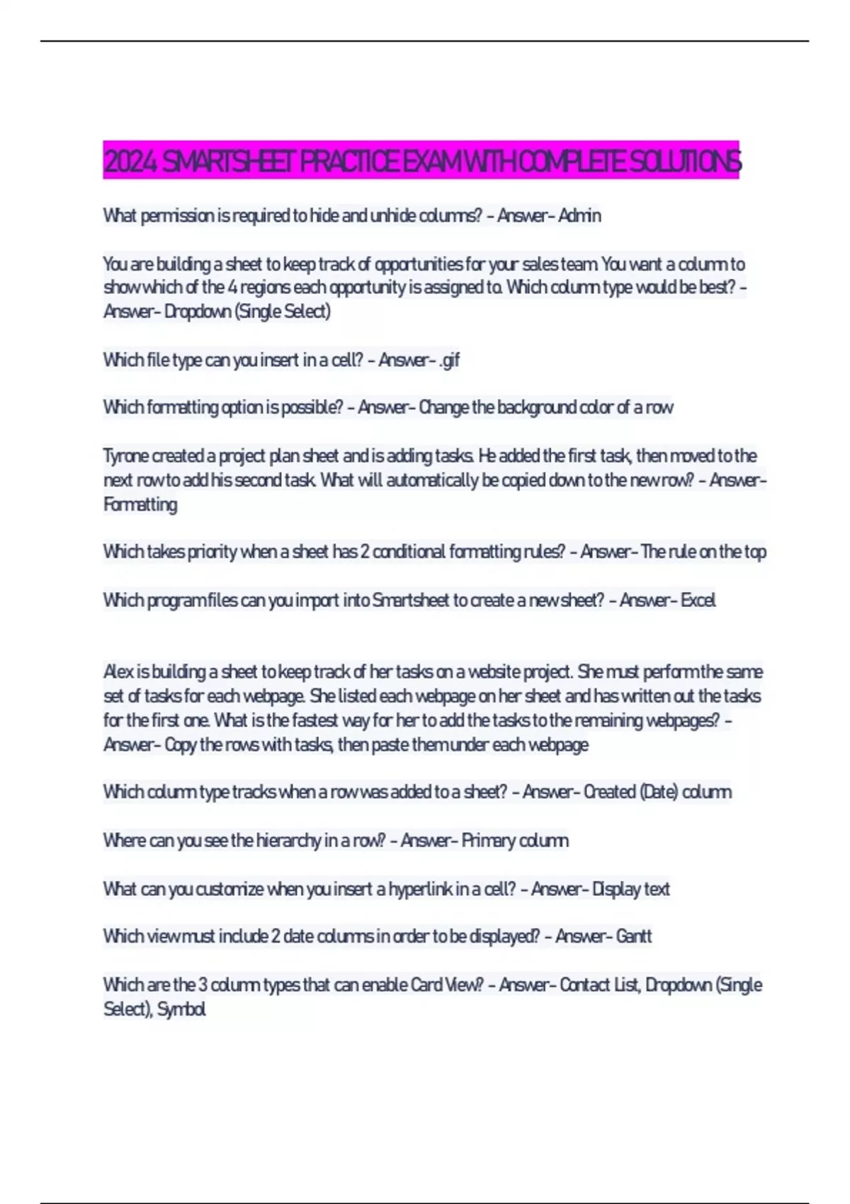 2024 SMARTSHEET PRACTICE EXAM WITH COMPLETE SOLUTIONS