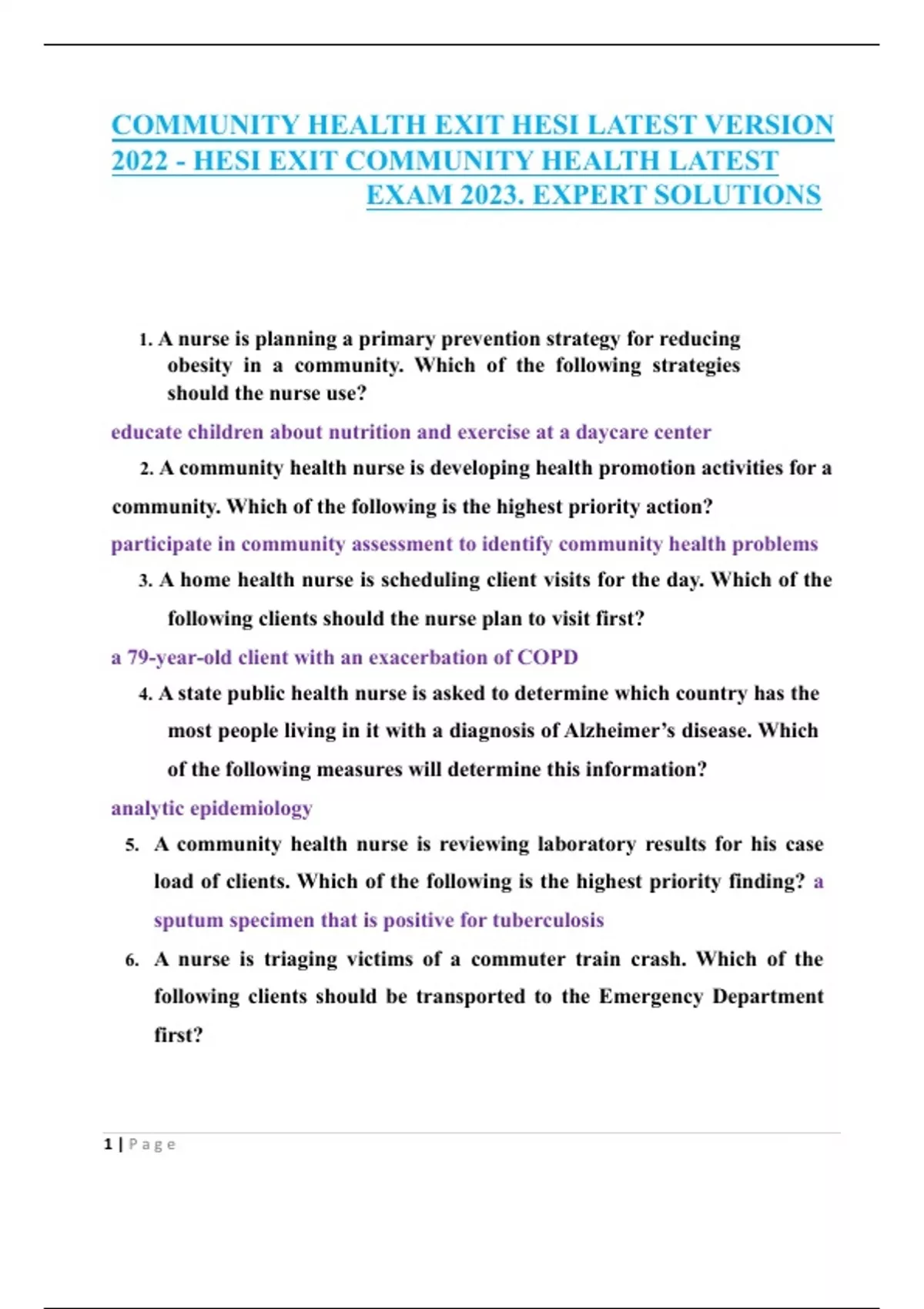 COMMUNITY HEALTH EXIT HESI LATEST VERSION 2022 - HESI EXIT COMMUNITY HEALTH LATEST EXAM 2023. EXPERT SOLUTIONS