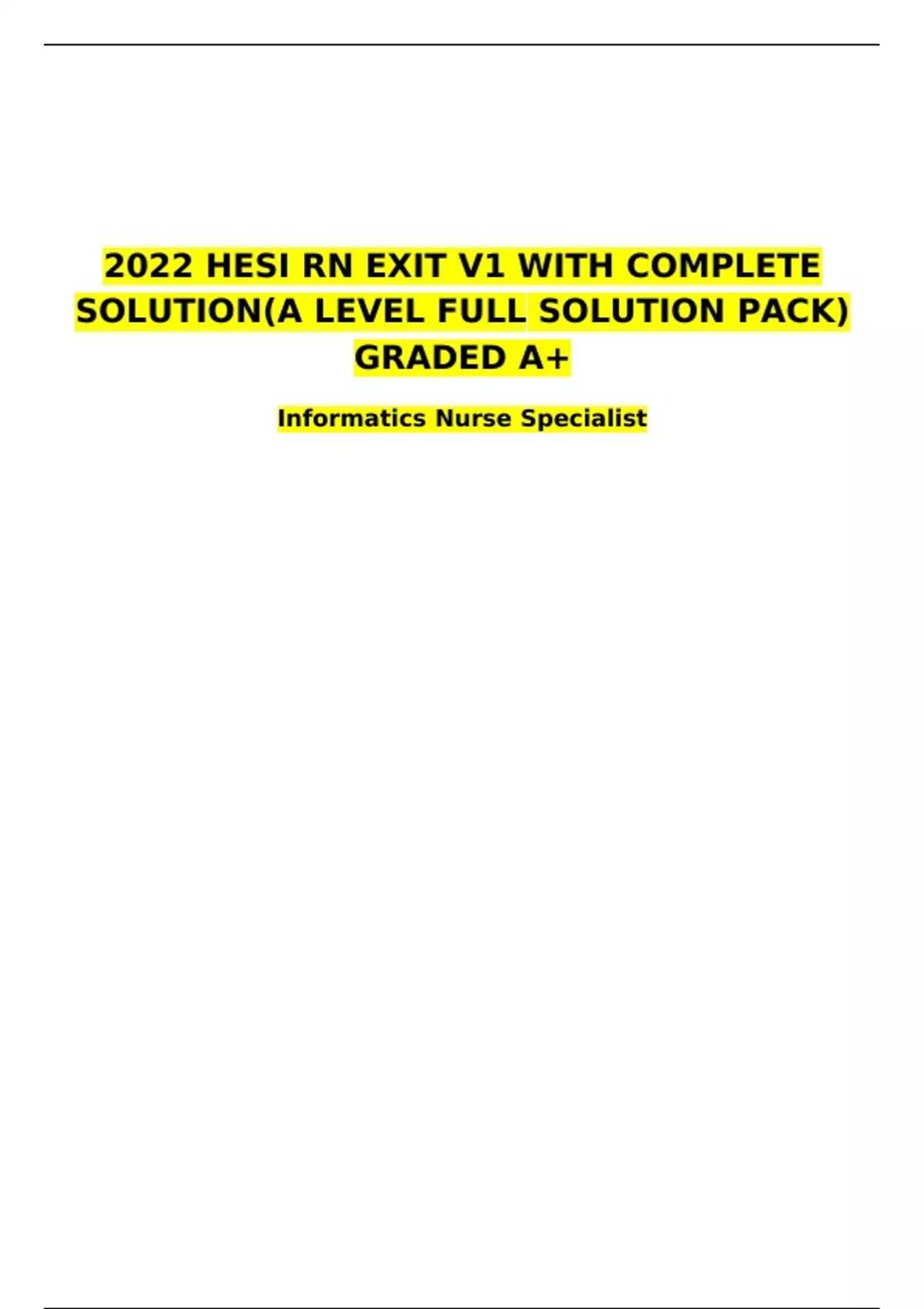 2022 HESI RN EXIT V1 WITH COMPLETE SOLUTION(A LEVEL FULL SOLUTION PACK) GRADED A+ Informatics Nurse Specialist